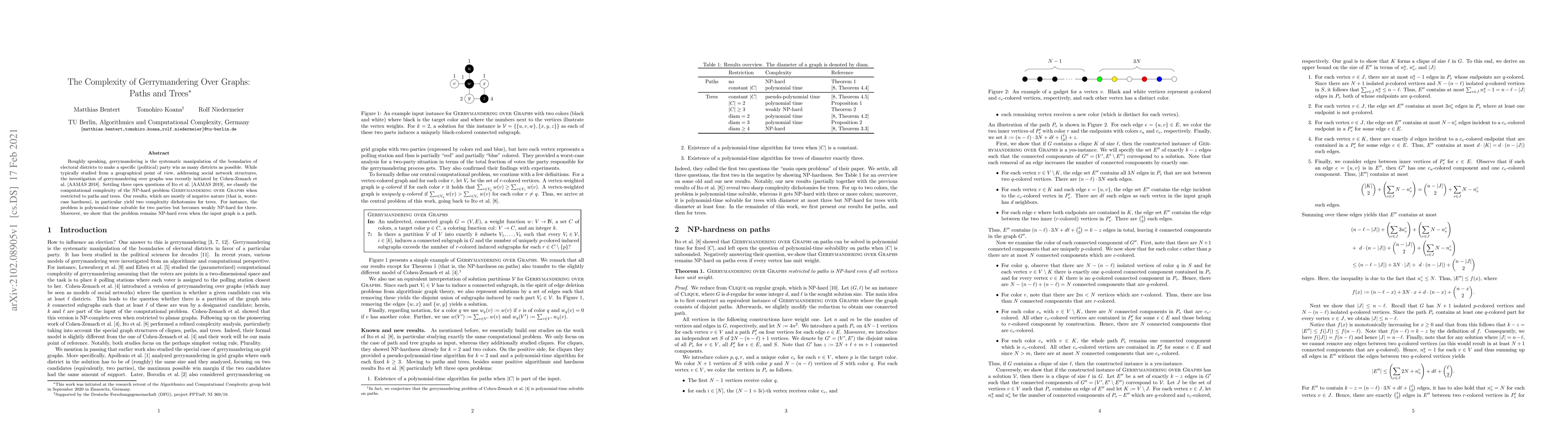 Research classifies the computational complexity of gerrymandering over graphs on paths and trees, finding worst-case hardness for most cases, with exceptions for two-party systems and specific graph types.