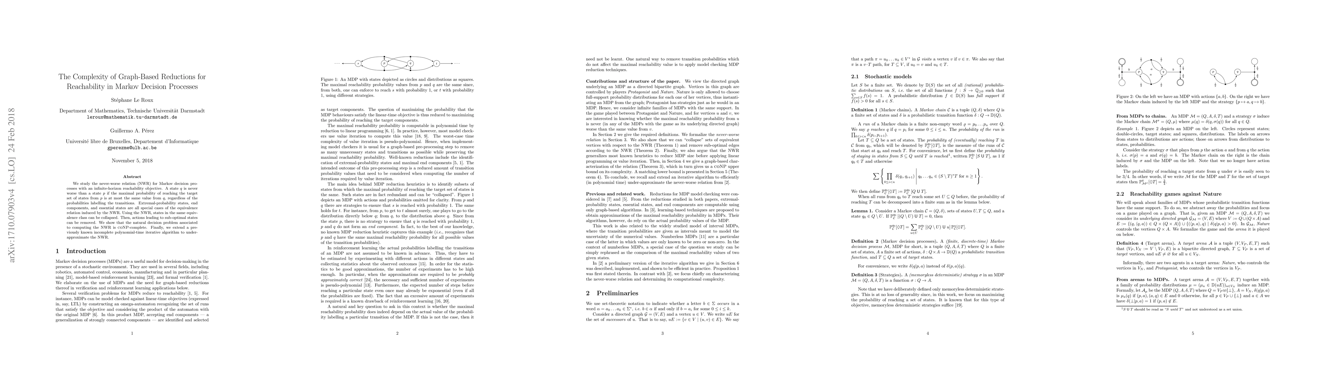 We study the never-worse relation (NWR) for Markov decision processes with an infinite-horizon reachability objective. A state q is never worse than a state p if the maximal probability of reaching the target set of states from p is at most the same value from q, regard- less of the probabilities labelling the transitions. Extremal-probability states, end components, and essential states are all special cases of the equivalence relation induced by the NWR. Using the NWR, states in the same equivalence class can be collapsed. Then, actions leading to sub- optimal states can be removed. We show the natural decision problem associated to computing the NWR is coNP-complete. Finally, we ex- tend a previously known incomplete polynomial-time iterative algorithm to under-approximate the NWR.