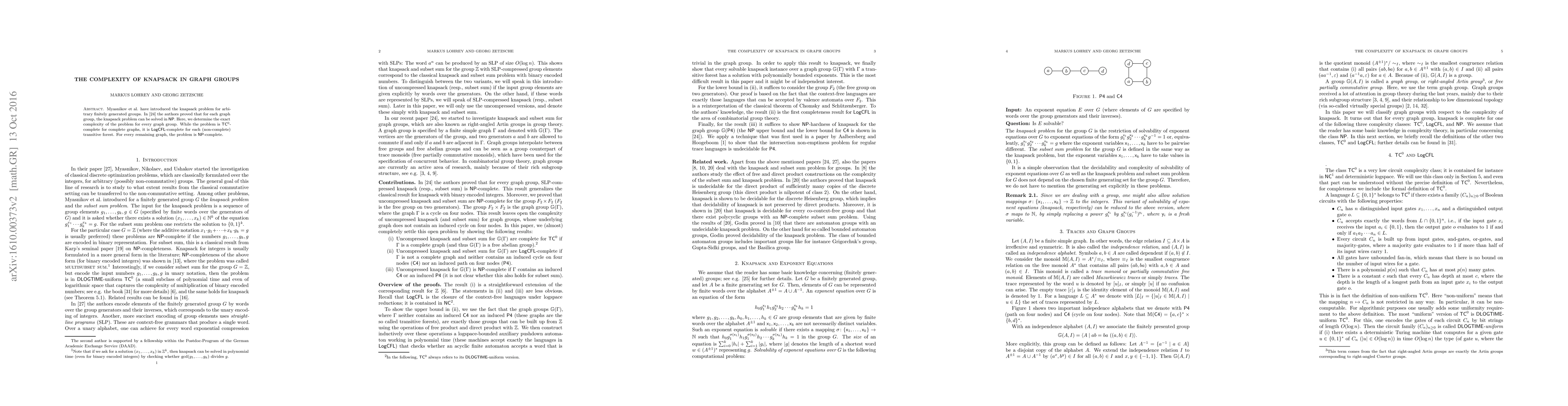 Myasnikov et al. have introduced the knapsack problem for arbitrary finitely generated groups. In previous work, the authors proved that for each graph group, the knapsack problem can be solved in $\mathsf{NP}$. Here, we determine the exact complexity of the problem for every graph group. While the problem is $\mathsf{TC}^0$-complete for complete graphs, it is $\mathsf{LogCFL}$-complete for each (non-complete) transitive forest. For every remaining graph, the problem is $\mathsf{NP}$-complete.