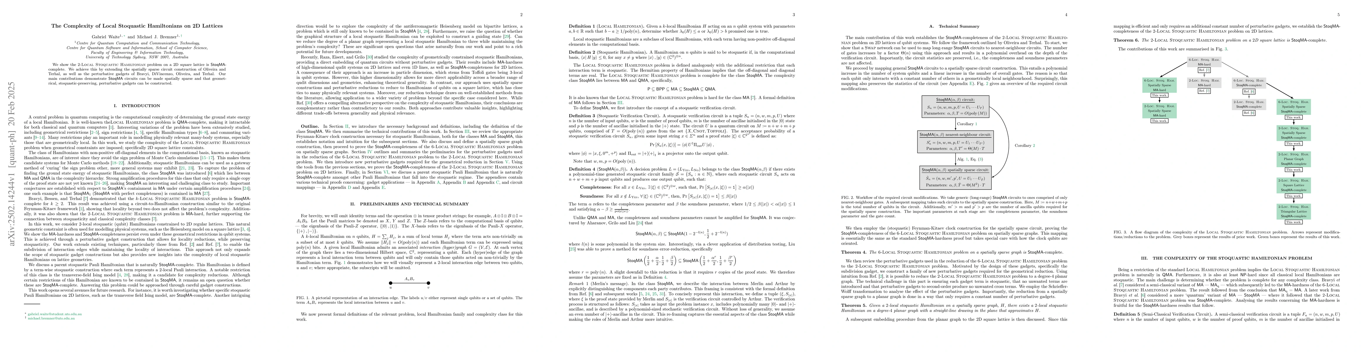 The paper builds upon previous work by Oliveira and Terhal, as well as Bravyi, DiVincenzo, Oliveira, and Terhal, by successfully merging their techniques to achieve StoqMA-completeness for 2-Local Stoquastic Hamiltonians on 2D lattices.