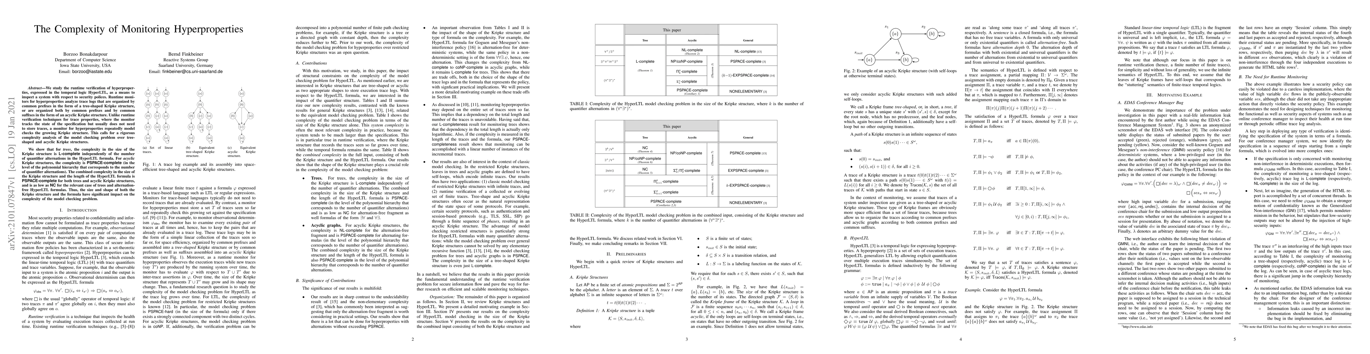 We study the runtime verification of hyperproperties, expressed in the temporal logic HyperLTL, as a means to inspect a system with respect to security polices. Runtime monitors for hyperproperties analyze trace logs that are organized by common prefixes in the form of a tree-shaped Kripke structure, or are organized both by common prefixes and by common suffixes in the form of an acyclic Kripke structure. Unlike runtime verification techniques for trace properties, where the monitor tracks the state of the specification but usually does not need to store traces, a monitor for hyperproperties repeatedly model checks the growing Kripke structure. This calls for a rigorous complexity analysis of the model checking problem over tree-shaped and acyclic Kripke structures. We show that for trees, the complexity in the size of the Kripke structure is L-complete independently of the number of quantifier alternations in the HyperLTL formula. For acyclic Kripke structures, the complexity is PSPACE-complete (in the level of the polynomial hierarchy that corresponds to the number of quantifier alternations). The combined complexity in the size of the Kripke structure and the length of the HyperLTL formula is PSPACE-complete for both trees and acyclic Kripke structures, and is as low as NC for the relevant case of trees and alternation-free HyperLTL formulas. Thus, the size and shape of both the Kripke structure and the formula have significant impact on the complexity of the model checking problem.