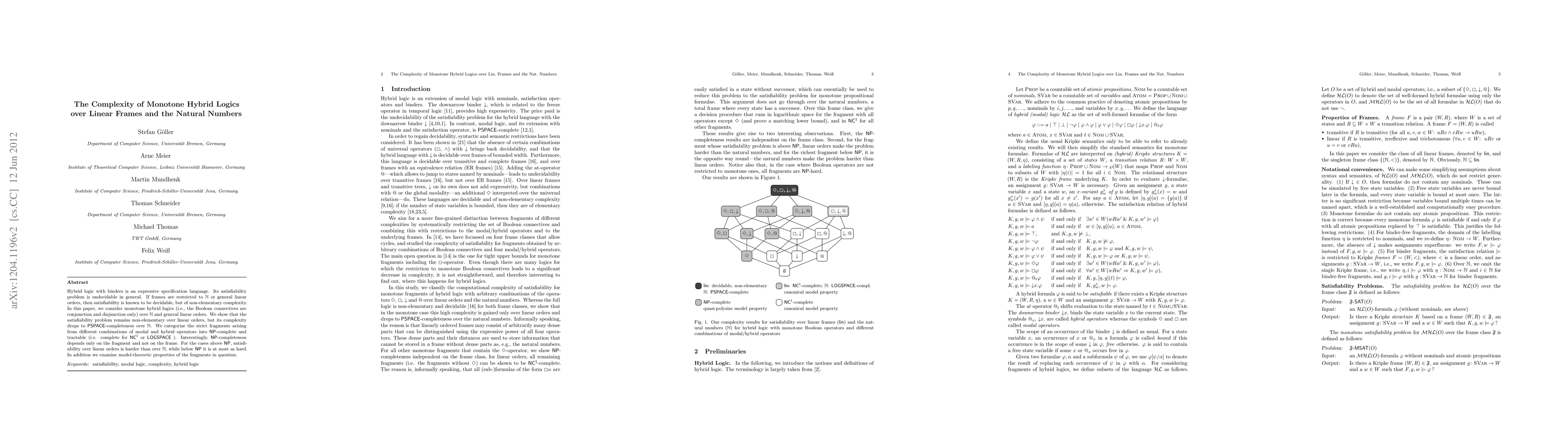 Hybrid logic with binders is an expressive specification language. Its satisfiability problem is undecidable in general. If frames are restricted to N or general linear orders, then satisfiability is known to be decidable, but of non-elementary complexity. In this paper, we consider monotone hybrid logics (i.e., the Boolean connectives are conjunction and disjunction only) over N and general linear orders. We show that the satisfiability problem remains non-elementary over linear orders, but its complexity drops to PSPACE-completeness over N. We categorize the strict fragments arising from different combinations of modal and hybrid operators into NP-complete and tractable (i.e. complete for NC1or LOGSPACE). Interestingly, NP-completeness depends only on the fragment and not on the frame. For the cases above NP, satisfiability over linear orders is harder than over N, while below NP it is at most as hard. In addition we examine model-theoretic properties of the fragments in question.