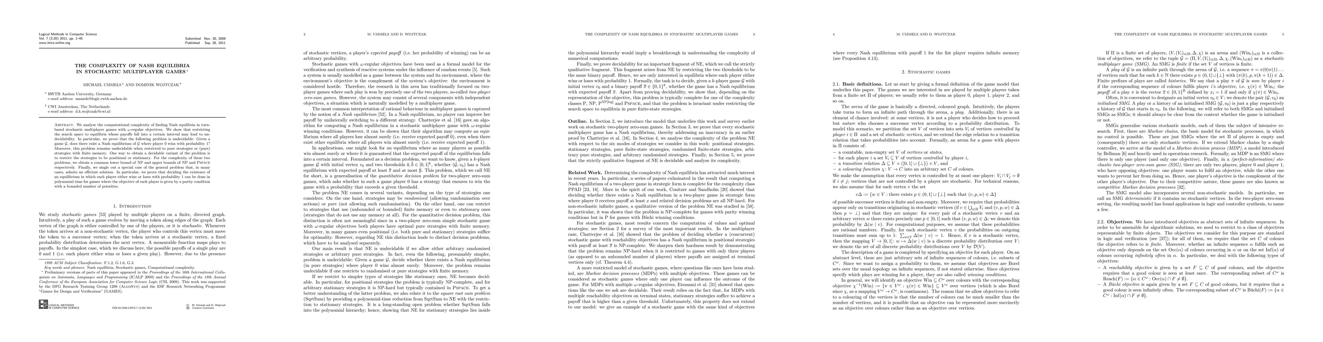 This paper explores the computational complexity of finding Nash equilibria in stochastic multiplayer games, demonstrating that certain restrictions can lead to undecidability. It identifies a special case where the problem can be solved in polynomial time for games with bounded priority parity conditions.