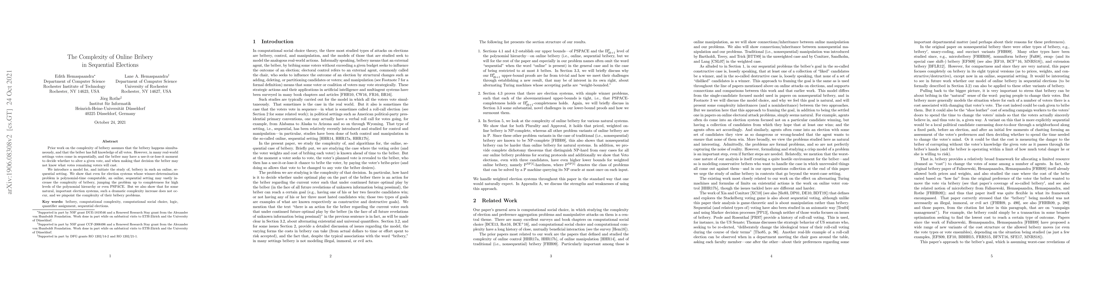 This paper explores the complexity of bribery in sequential elections where votes are revealed one at a time, contrasting with traditional simultaneous models. It shows that this online setting can significantly increase bribery complexity, sometimes reaching PSPACE-completeness, but identifies election systems where complexity remains manageable.