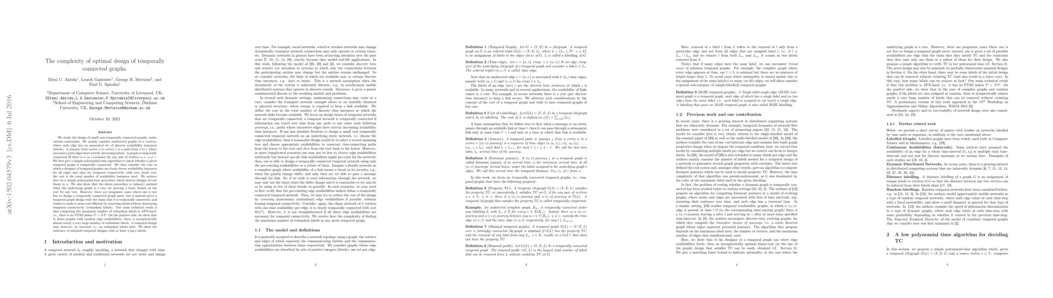 Researchers developed a polynomial-time algorithm to design small cost temporally connected graphs with minimal redundancy, showing that efficient designs exist for dense graphs and establishing an almost-optimal lower bound for trees.