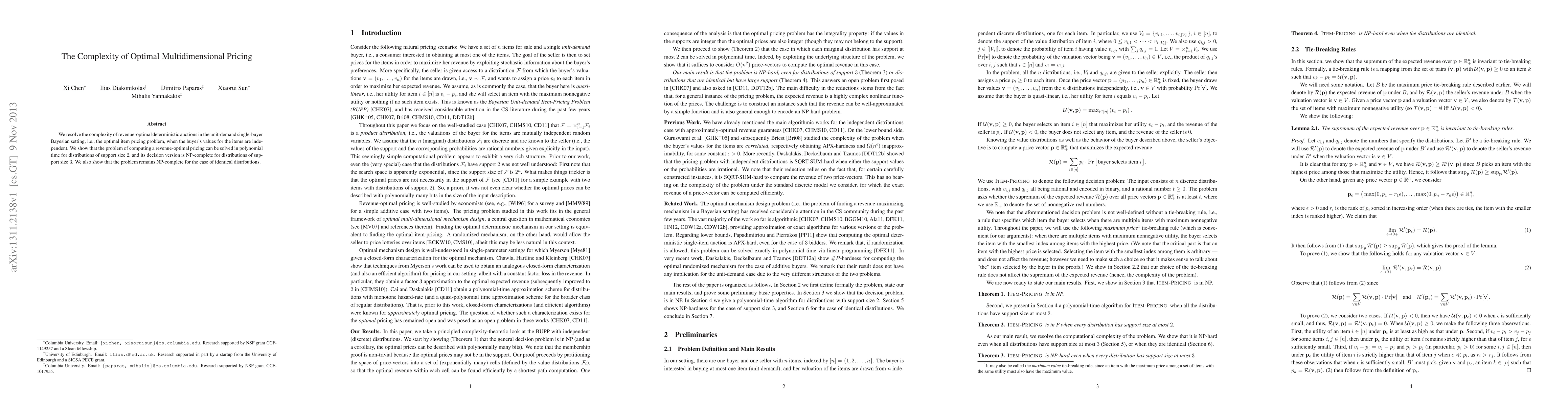 This study contributes to the understanding of the computational complexity of optimal pricing mechanisms, which is crucial for designing efficient auctions and pricing strategies in various economic and computational contexts.