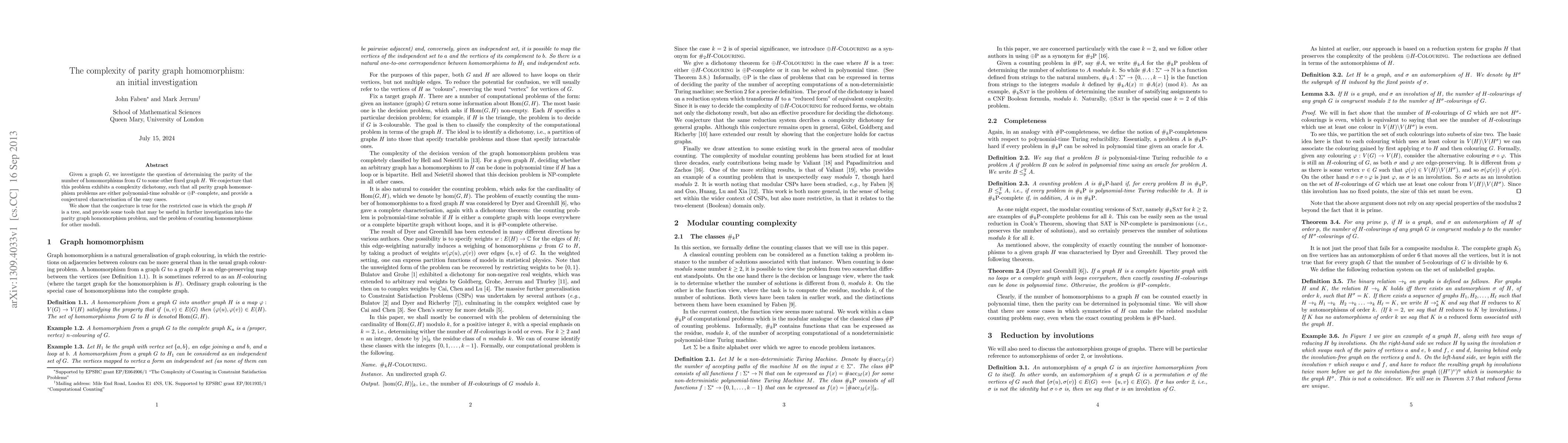 The paper explores the complexity of determining the parity of homomorphisms from graph G to a fixed graph H, proposing a complexity dichotomy. The conjecture holds true for the case when H is a tree, and tools for further exploration are introduced.