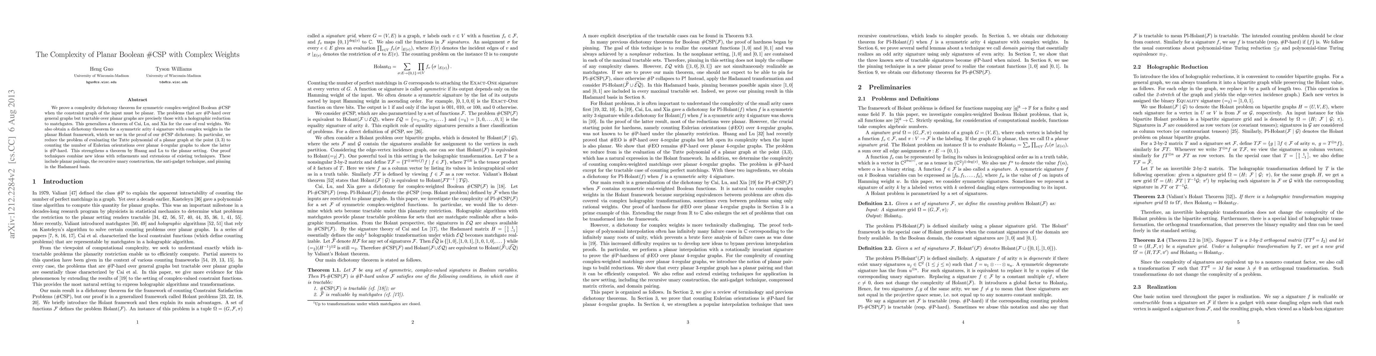 This paper establishes a complexity dichotomy for planar Boolean #CSP with complex weights, showing that problems #P-hard on general graphs but tractable on planar ones reduce holographically to matchgates. It also proves a similar dichotomy for planar Holant problems of arity 4, leveraging advanced techniques like planar pairings and the recursive unary construction.