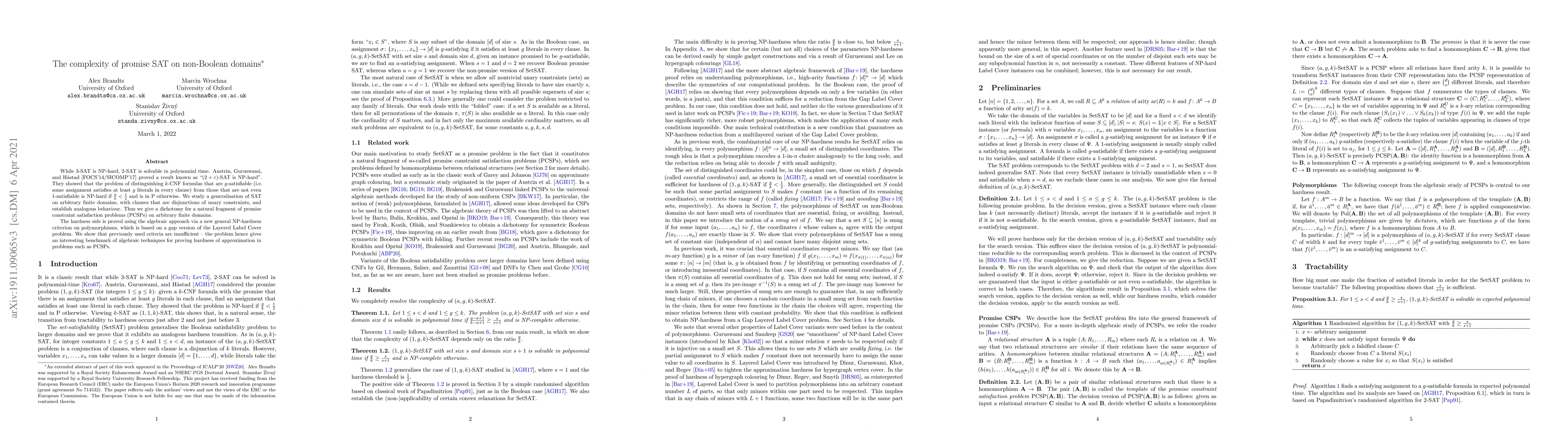 This paper studies promise SAT on non-Boolean domains, establishing a dichotomy for a fragment of promise constraint satisfaction problems. The hardness is proven using an algebraic approach based on a new NP-hardness criterion, demonstrating the effectiveness of algebraic techniques for proving the hardness of approximation problems.