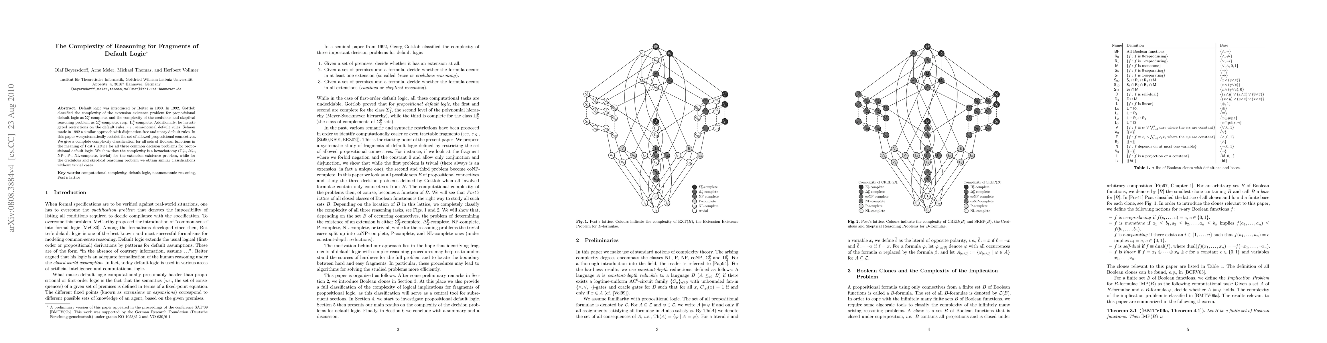 This paper investigates the complexity of reasoning in fragments of default logic by restricting the propositional connectives allowed. It classifies the complexity of extension existence, credulous, and skeptical reasoning problems across various sets of Boolean functions, revealing a hexachotomy for extension existence and similar classifications for other problems without trivial cases.
