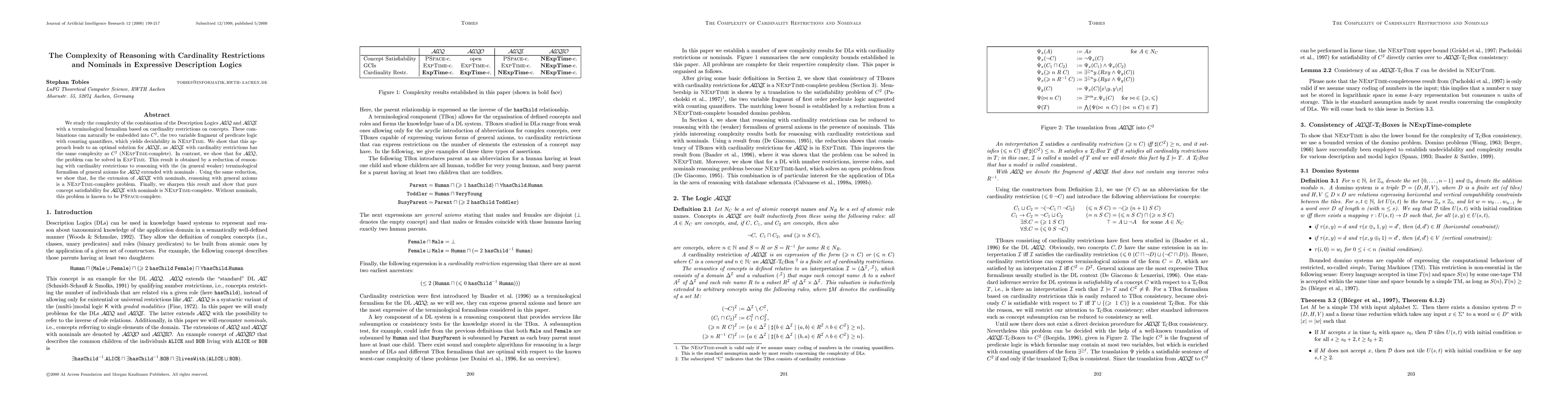 This paper explores the complexity of combining ALCQ and ALCQI description logics with cardinality restrictions, showing that ALCQI with these restrictions is NExpTime-complete, while ALCQ is ExpTime-complete. It also demonstrates that adding nominals to ALCQI results in NExpTime-complete reasoning with general axioms and pure concept satisfiability.