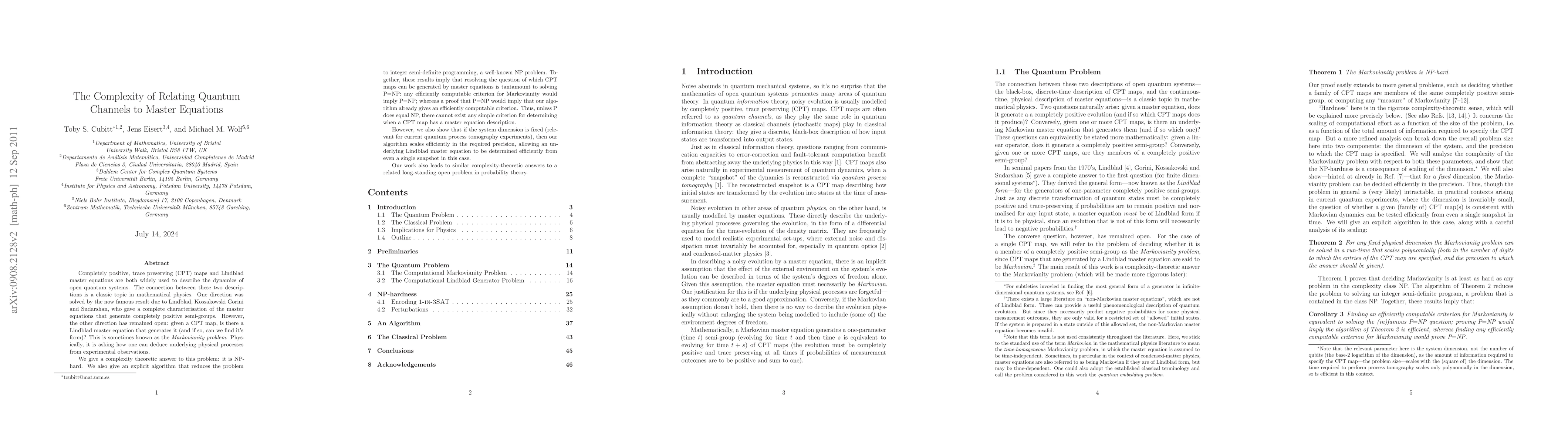 Completely positive, trace preserving (CPT) maps and Lindblad master equations are both widely used to describe the dynamics of open quantum systems. The connection between these two descriptions is a classic topic in mathematical physics. One direction was solved by the now famous result due to Lindblad, Kossakowski Gorini and Sudarshan, who gave a complete characterisation of the master equations that generate completely positive semi-groups. However, the other direction has remained open: given a CPT map, is there a Lindblad master equation that generates it (and if so, can we find it's form)? This is sometimes known as the Markovianity problem. Physically, it is asking how one can deduce underlying physical processes from experimental observations. We give a complexity theoretic answer to this problem: it is NP-hard. We also give an explicit algorithm that reduces the problem to integer semi-definite programming, a well-known NP problem. Together, these results imply that resolving the question of which CPT maps can be generated by master equations is tantamount to solving P=NP: any efficiently computable criterion for Markovianity would imply P=NP; whereas a proof that P=NP would imply that our algorithm already gives an efficiently computable criterion. Thus, unless P does equal NP, there cannot exist any simple criterion for determining when a CPT map has a master equation description. However, we also show that if the system dimension is fixed (relevant for current quantum process tomography experiments), then our algorithm scales efficiently in the required precision, allowing an underlying Lindblad master equation to be determined efficiently from even a single snapshot in this case. Our work also leads to similar complexity-theoretic answers to a related long-standing open problem in probability theory.