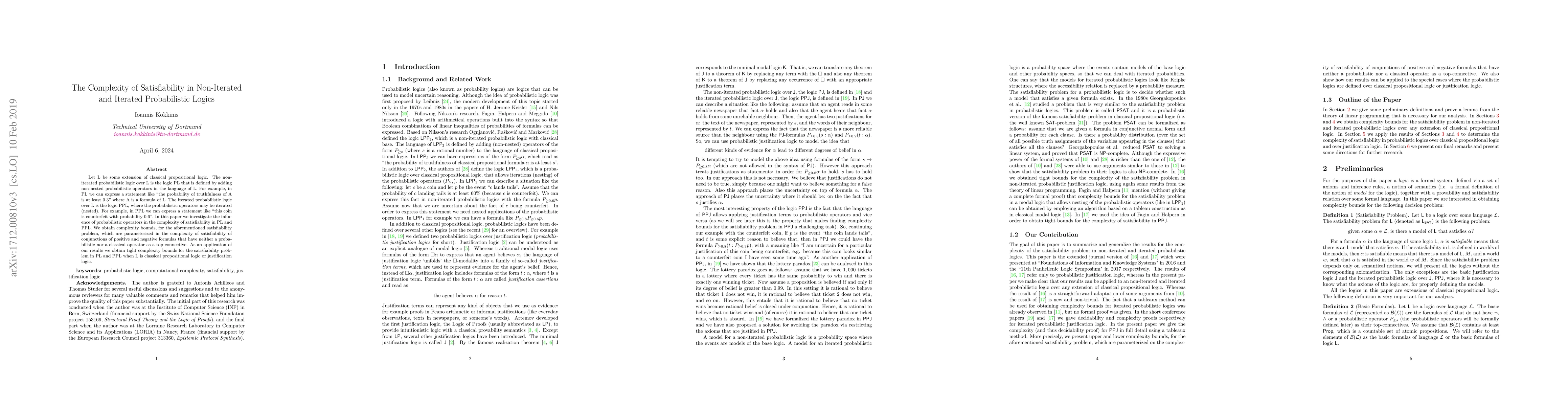 This paper investigates the complexity of satisfiability in non-iterated and iterated probabilistic logics, providing tight bounds for specific logic types.