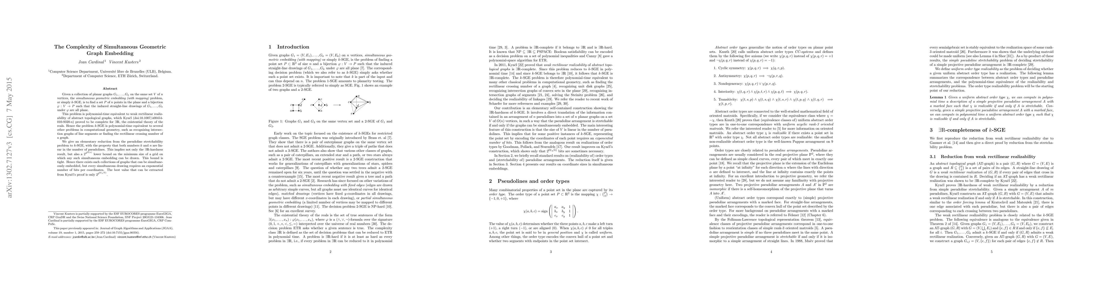 Researchers show that simultaneous geometric graph embedding is polynomial-time equivalent to known problems in computational geometry, implying a lower bound on the minimum size of a grid required for such embeddings.