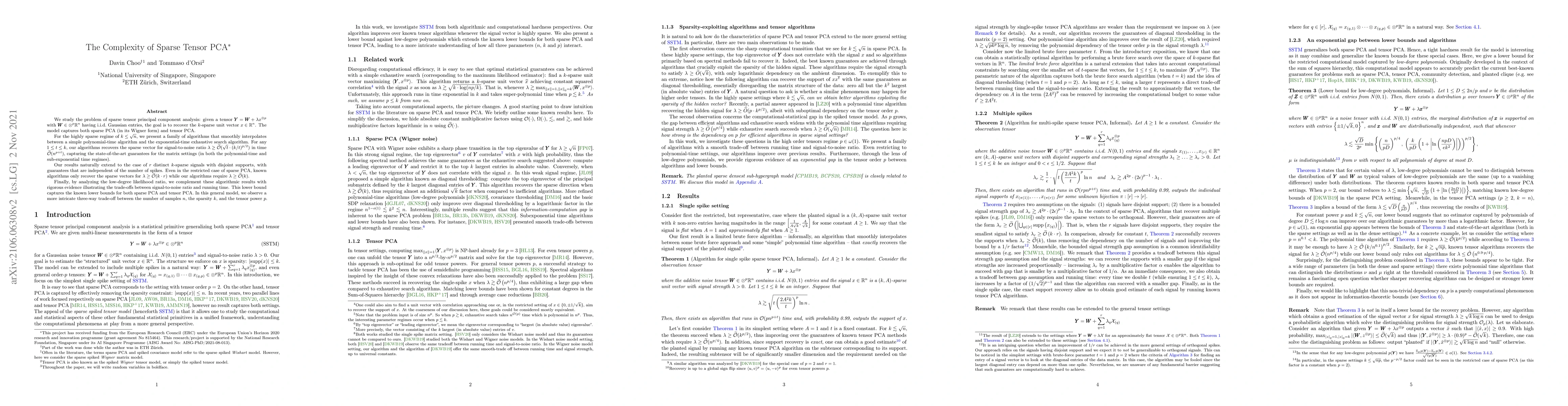 This paper proposes algorithms for sparse tensor principal component analysis, achieving state-of-the-art performance for recovering $k$-sparse vectors in tensors under a Gaussian noise model, with a trade-off between signal-to-noise ratio and computational efficiency. The algorithms extend to multiple sparse signals and provide insights into the complexity of the problem.