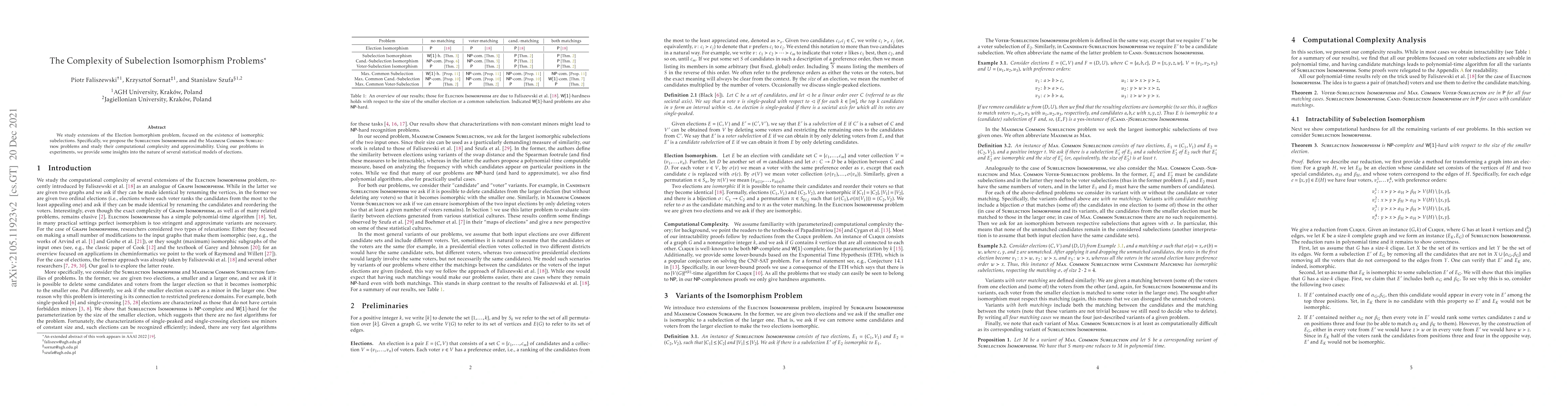 This paper explores the computational complexity and approximability of Subelection Isomorphism and Maximum Common Subelection problems, extending the Election Isomorphism problem to investigate isomorphic subelections, and uses these insights to analyze statistical models of elections.