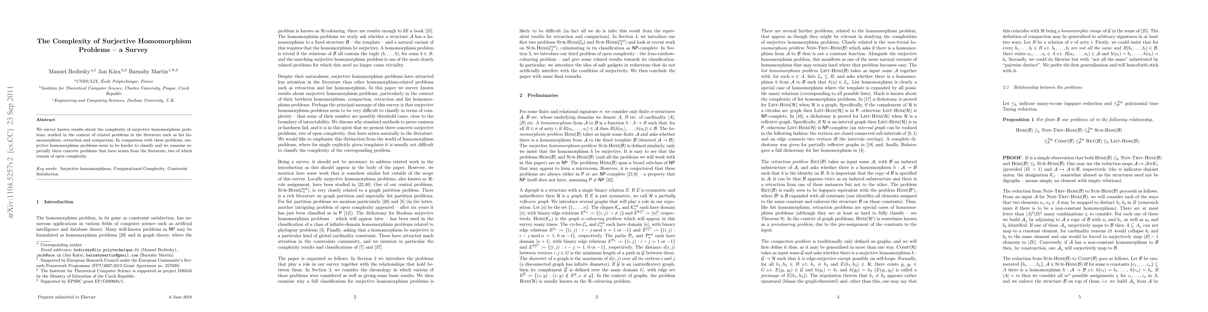 This paper surveys the complexity of surjective homomorphism problems, highlighting their comparative difficulty versus related problems like list homomorphism. It focuses on three specific problems, two of which have unresolved complexity status.