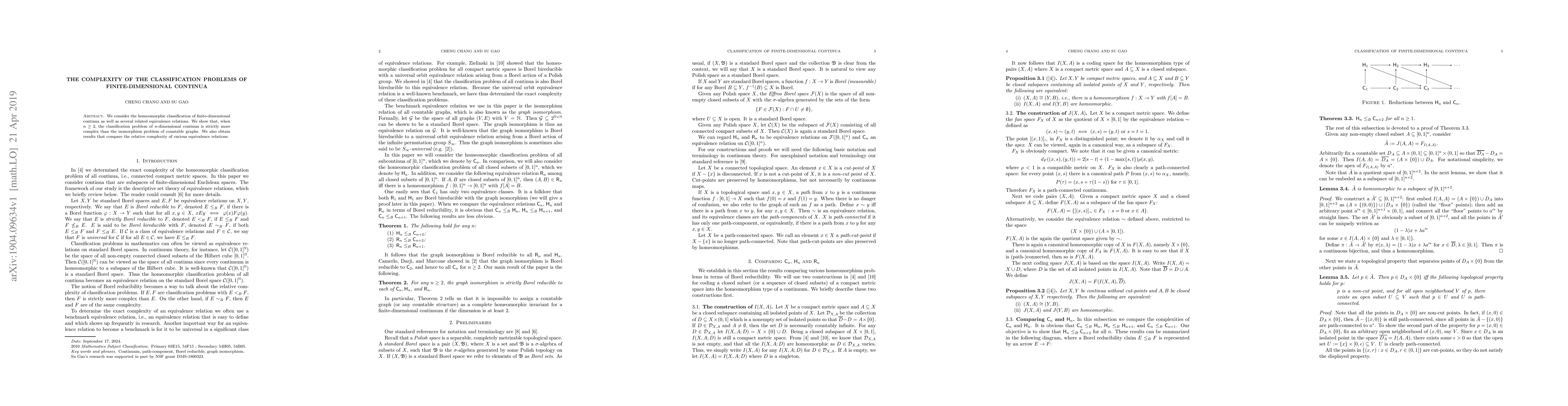 We consider the homeomorphic classification of finite-dimensional continua as well as several related equivalence relations. We show that, when $n \geq 2$, the classification problem of $n$-dimensional continua is strictly more complex than the isomorphism problem of countable graphs. We also obtain results that compare the relative complexity of various equivalence relations.
