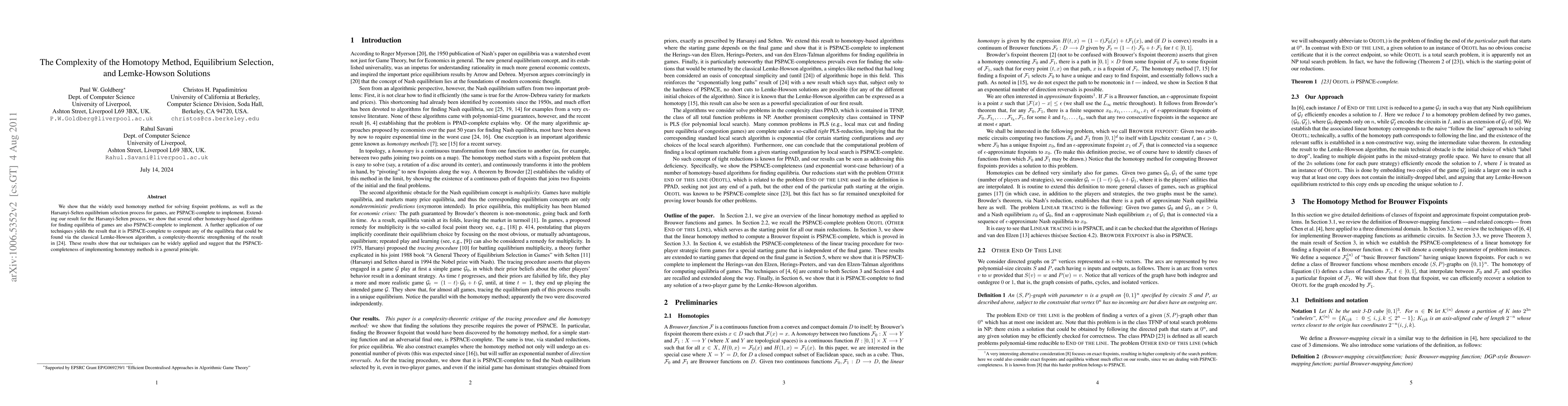 This paper demonstrates that the homotopy method for solving fixpoint problems and the Harsanyi-Selten equilibrium selection process for games are PSPACE-complete. It further shows that several homotopy-based algorithms for game equilibria and the Lemke-Howson algorithm for equilibrium computation are also PSPACE-complete, indicating a broad applicability of these complexity results.