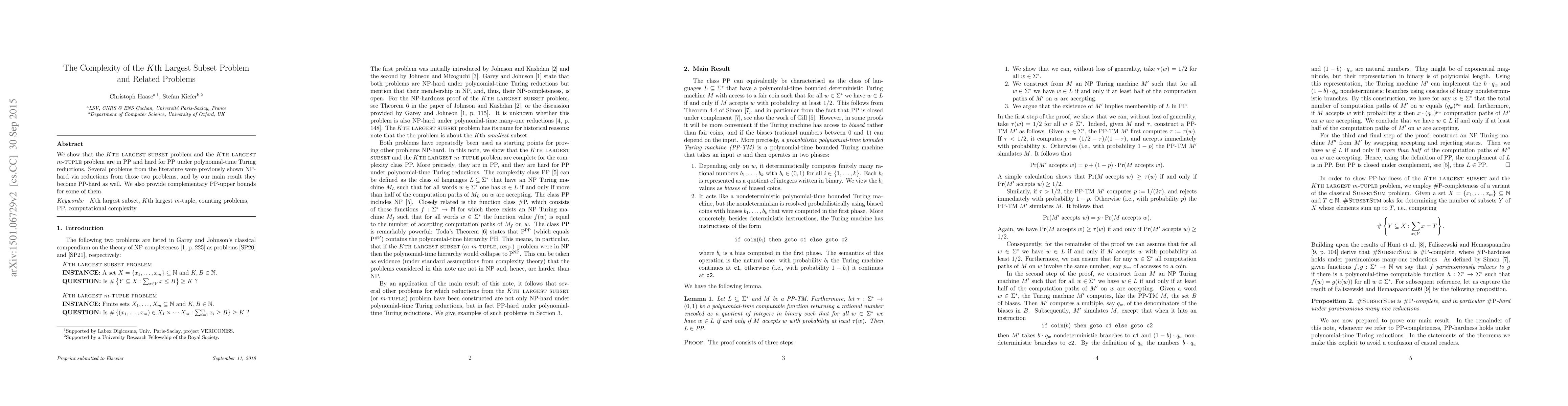 This research establishes that the Kth largest subset problem and Kth largest m-tuple problem belong to the complexity class PP. It further proves these problems are PP-hard under polynomial-time Turing reductions, thereby making previously proven NP-hard problems PP-hard as well. The study also offers PP-upper bounds for certain related problems.