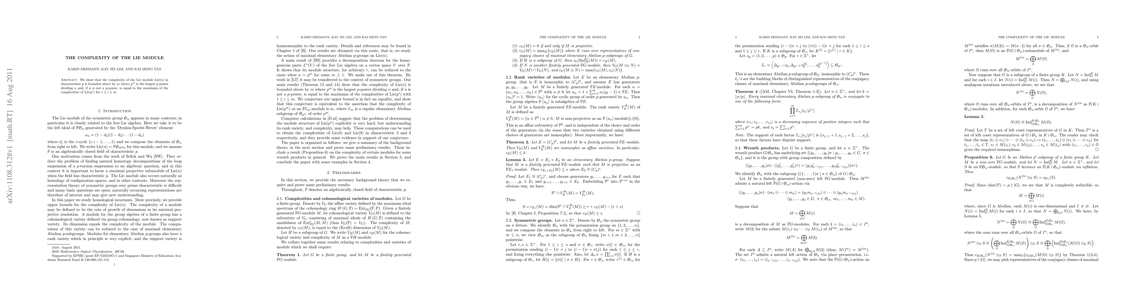 The complexity of a Lie module in characteristic p is bounded above by m, where m is the largest power of p dividing n. If n is not a power of p, it equals the maximum complexity of smaller submodules.
