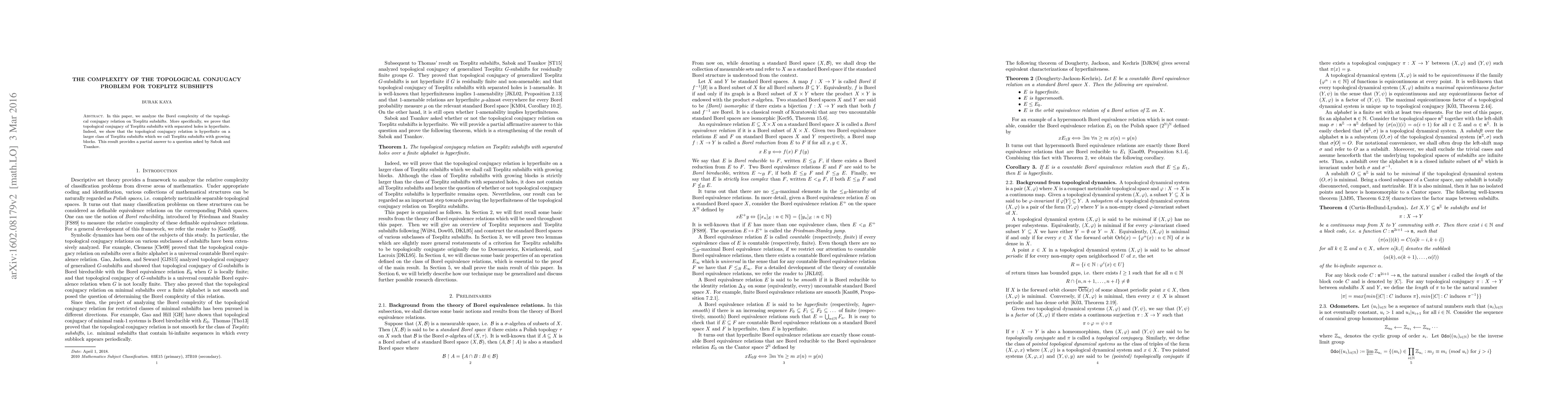 This paper investigates the Borel complexity of topological conjugacy in Toeplitz subshifts, proving that conjugacy for Toeplitz subshifts with separated holes is hyperfinite. It extends this result to a broader class called Toeplitz subshifts with growing blocks, addressing a question posed by Sabok and Tsankov.