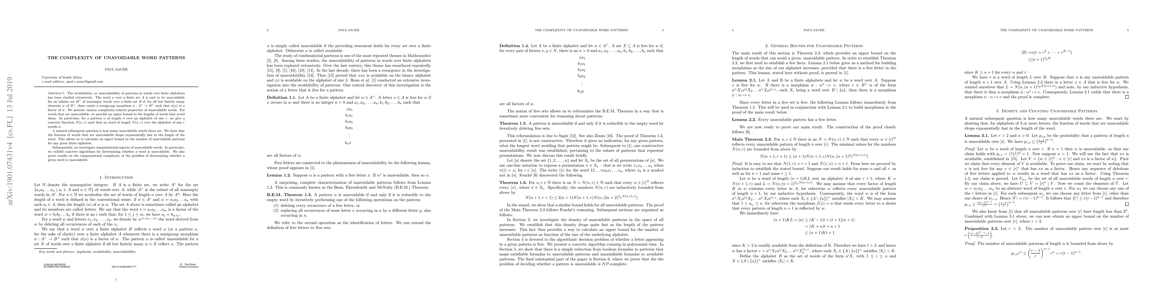 This paper explores the complexity of unavoidable word patterns in finite alphabets, providing upper bounds on the lengths of avoidable words and demonstrating that the number of unavoidable words decreases exponentially with length. It also presents algorithms and computational complexity results for determining if a word is unavoidable.