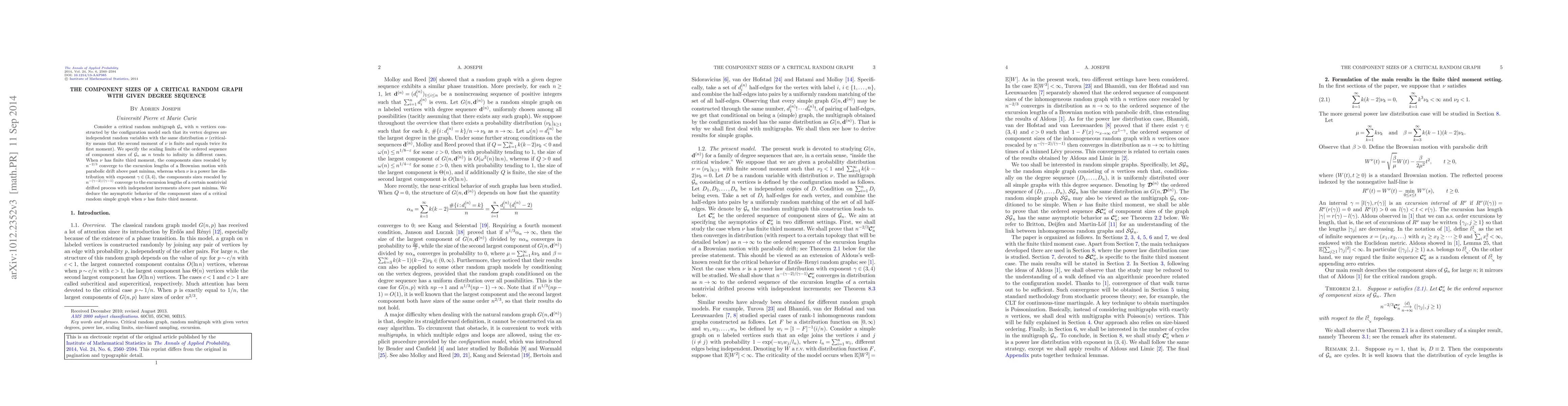This study examines the scaling limits of component sizes in critical random graphs with given degree sequences, finding convergence to specific Brownian motion processes under different conditions.