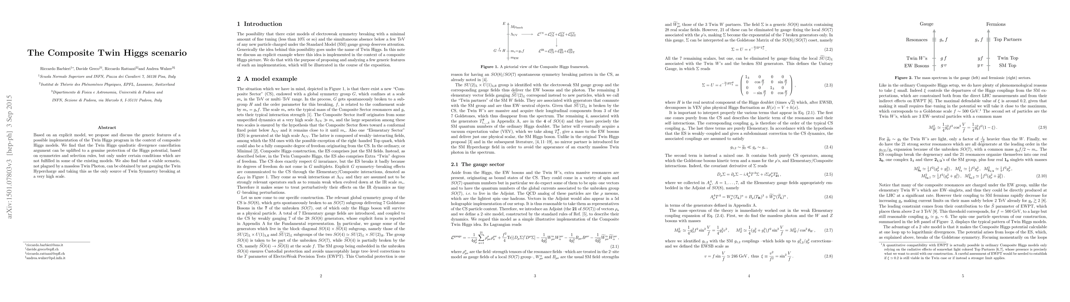 The Composite Twin Higgs scenario proposes a viable implementation of the Twin Higgs program within composite Higgs models, achieving genuine protection of the Higgs potential through symmetries and selection rules, while avoiding a massless Twin Photon by not gauging the Twin Hypercharge.