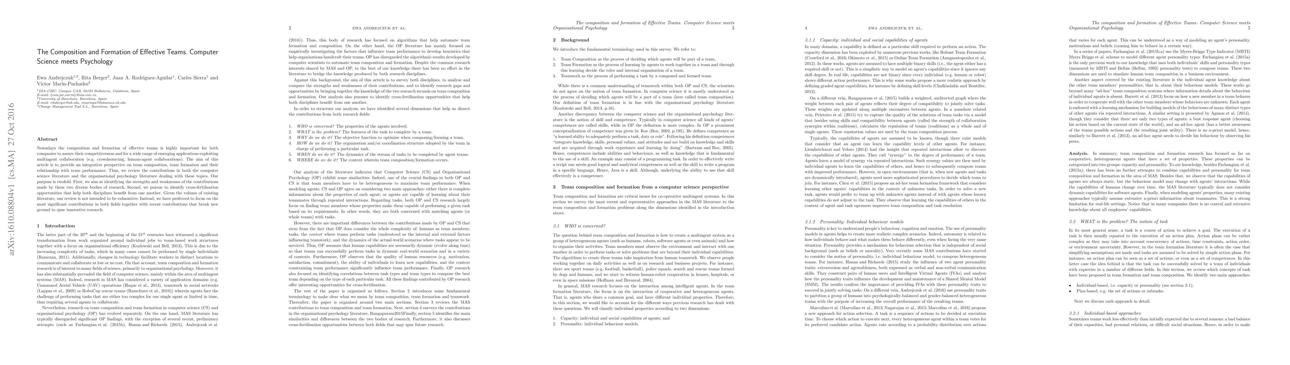 This paper reviews key contributions from computer science and organizational psychology on team composition and formation, focusing on their impact on team performance. It aims to highlight the strengths and weaknesses of both fields and identify opportunities for cross-disciplinary benefits.