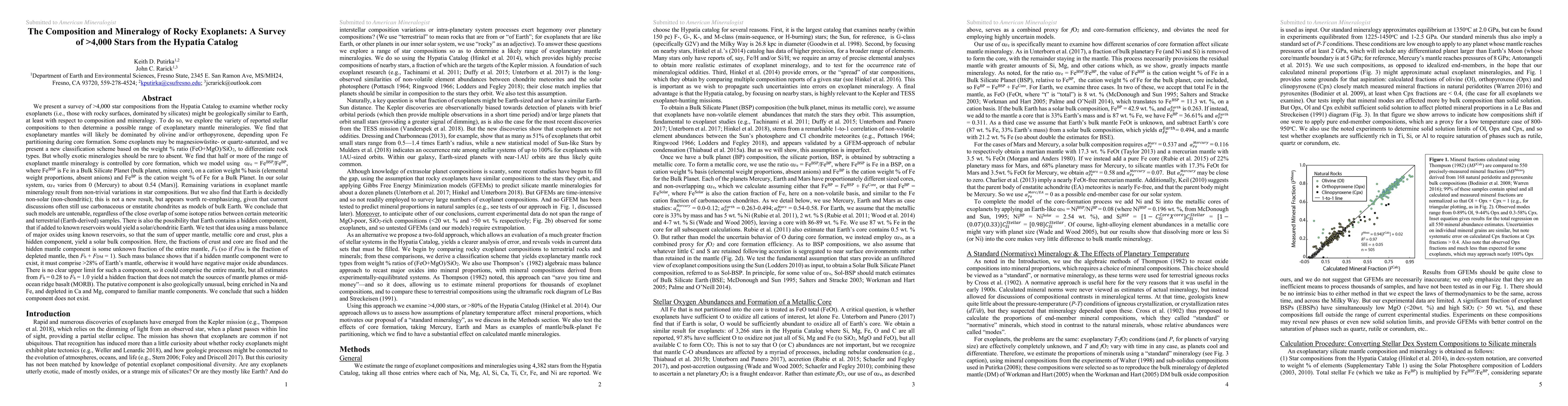We present a survey of >4,000 star compositions from the Hypatia Catalog to examine whether rocky exoplanets (i.e., those with rocky surfaces, dominated by silicates) might be geologically similar to Earth, at least with respect to composition and mineralogy. To do so, we explore the variety of reported stellar compositions to then determine a possible range of exoplanetary mantle mineralogies. We find that exoplanetary mantles will likely be dominated by olivine and/or orthopyroxene, depending upon Fe partitioning during core formation. Some exoplanets may be magnesiowustite- or quartz-saturated, and we present a new classification scheme based on the weight $\%$ ratio (FeO+MgO)/SiO$_{2}$, to differentiate rock types. But wholly exotic mineralogies should be rare to absent. We find that half or more of the range of exoplanet mantle mineralogy is controlled by core formation, which we model using $\alpha_{Fe}$ = $Fe^{BSP}$/$Fe^{BP}$, where $Fe^{BSP}$ is Fe in a Bulk Silicate Planet (bulk planet, minus core), on a cation weight $\%$ basis (elemental weight proportions, absent anions) and $Fe^{BP}$ is the cation weight $\%$ of Fe for a Bulk Planet. In our solar system, $\alpha_{Fe}$ varies from 0 (Mercury) to about 0.54 (Mars). Remaining variations in exoplanet mantle mineralogy result from non-trivial variations in star compositions. Our major oxide analysis also verifies earlier, isotopic studies indicating that Earth is non-solar (non-chondritic). We also find that major oxide estimates for Earth's mantle appear to preclude a hidden component in the deep mantle that would allow for a bulk solar/chondritic Earth. If it did exist, such a hidden component must comprise at least 28% of the mass of the total mantle (to avoid negative concentrations of some oxides) and would not look anything like the sources of ocean island or mid-ocean ridge basalts.