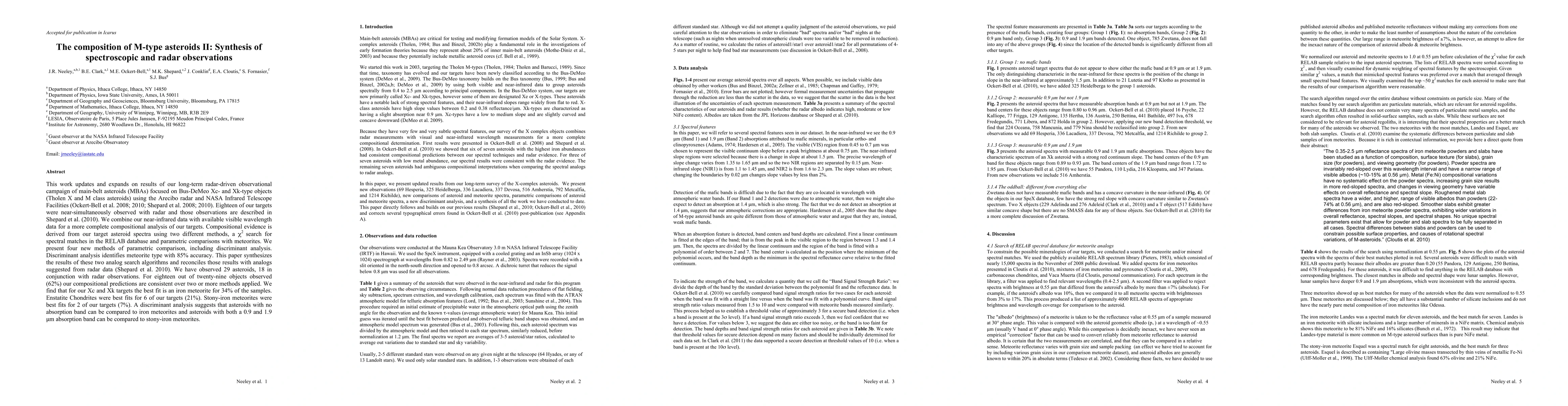 This work updates and expands on results of our long-term radar-driven observational campaign of main-belt asteroids (MBAs) focused on Bus-DeMeo Xc- and Xk-type objects (Tholen X and M class asteroids) using the Arecibo radar and NASA Infrared Telescope Facilities (Ockert-Bell et al. 2008; 2010; Shepard et al. 2008; 2010). Eighteen of our targets were near-simultaneously observed with radar and those observations are described in Shepard et al. (2010). We combine our near-infrared data with available visible wavelength data for a more complete compositional analysis of our targets. Compositional evidence is derived from our target asteroid spectra using two different methods, a \c{hi}2 search for spectral matches in the RELAB database and parametric comparisons with meteorites. We present four new methods of parametric comparison, including discriminant analysis. Discriminant analysis identifies meteorite type with 85% accuracy. This paper synthesizes the results of these two analog search algorithms and reconciles those results with analogs suggested from radar data (Shepard et al. 2010). We have observed 29 asteroids, 18 in conjunction with radar observations. For eighteen out of twenty-nine objects observed (62%) our compositional predictions are consistent over two or more methods applied. We find that for our Xc and Xk targets the best fit is an iron meteorite for 34% of the samples. Enstatite Chondrites were best fits for 6 of our targets (21%). Stony-iron meteorites were best fits for 2 of our targets (7%). A discriminant analysis suggests that asteroids with no absorption band can be compared to iron meteorites and asteroids with both a 0.9 and 1.9 {\mu}m absorption band can be compared to stony-iron meteorites.