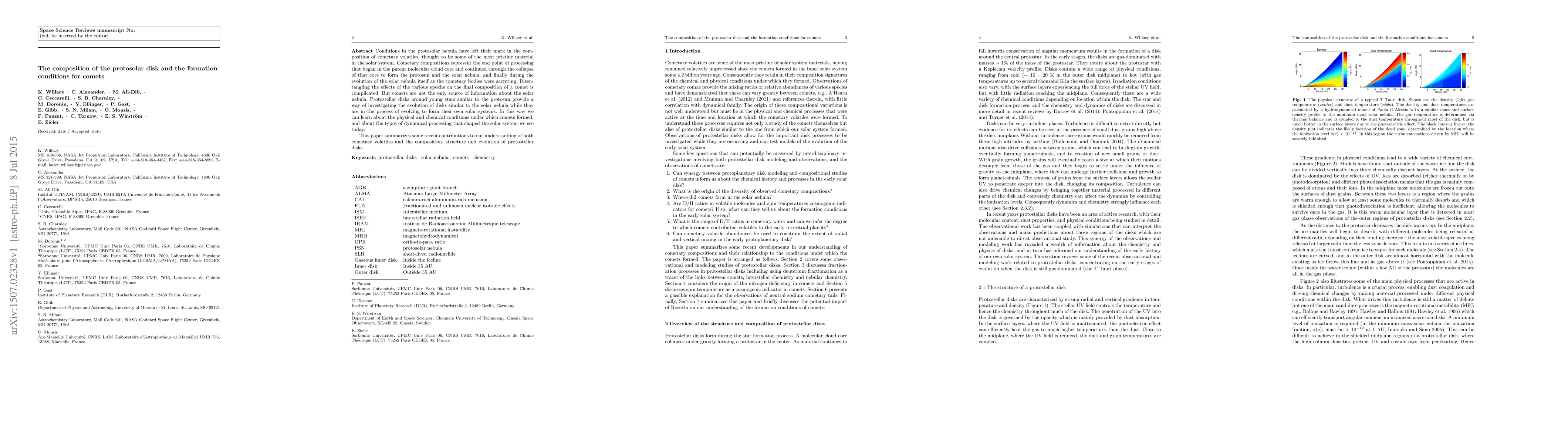 This paper explores the compositional history of comets, tracing their origins from the protosolar nebula to the molecular cloud core, and examines protostellar disks to understand the conditions that shaped cometary formation and the solar system's evolution. Recent findings on cometary volatiles and protostellar disk dynamics are highlighted.