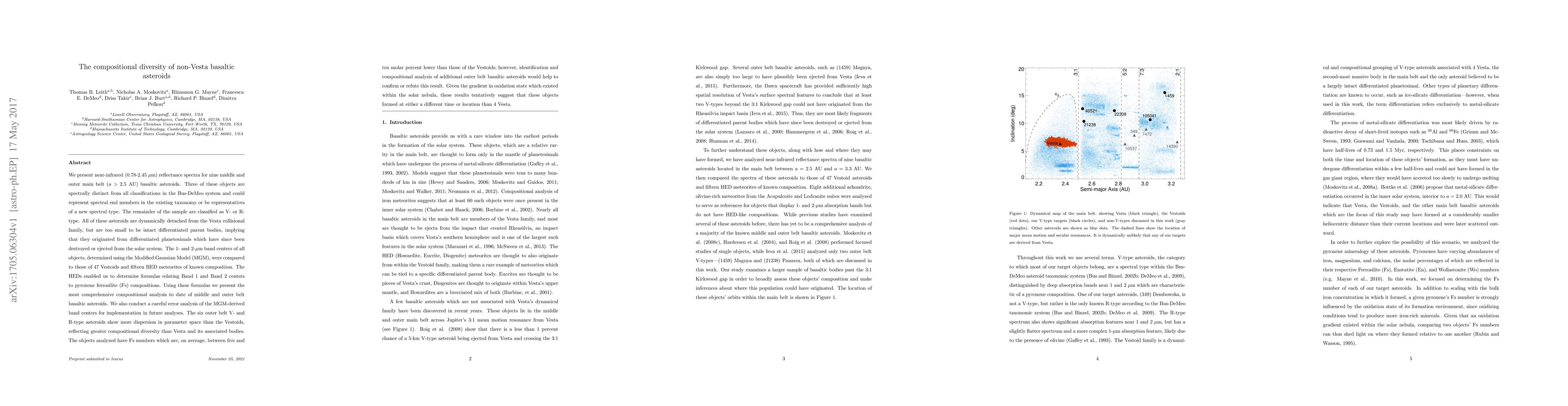 This paper analyzes near-infrared spectra of nine basaltic asteroids, revealing compositional diversity among them, with three potentially representing new spectral types. The study finds these asteroids, distinct from Vesta, likely originated from destroyed differentiated planetesimals, suggesting they formed in a different time or location within the solar nebula compared to Vesta.