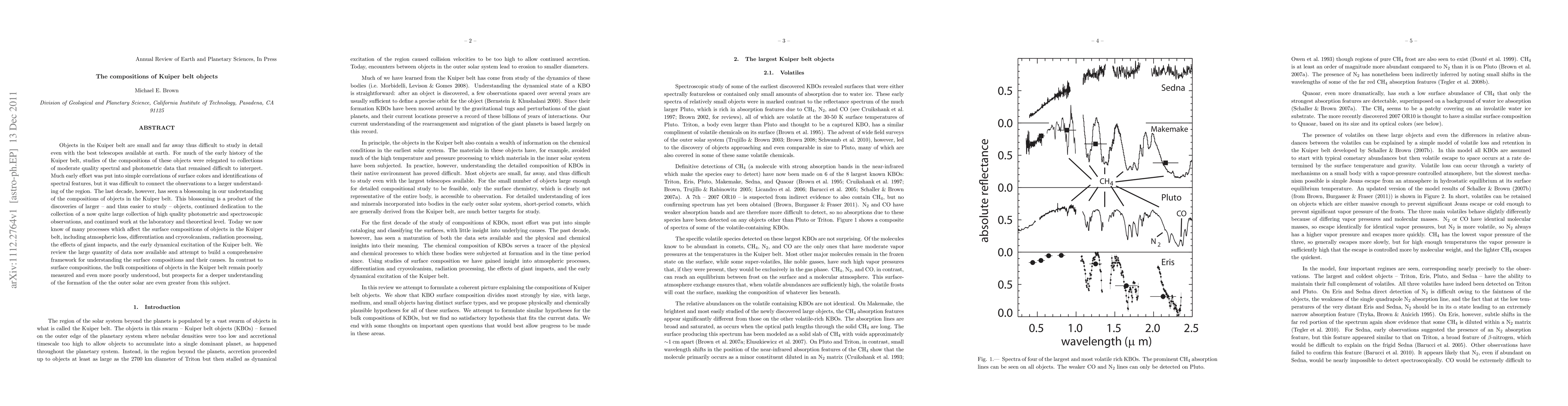 Objects in the Kuiper belt are small and far away thus difficult to study in detail even with the best telescopes available at earth. For much of the early history of the Kuiper belt, studies of the compositions of these objects were relegated to collections of moderate quality spectral and photometric data that remained difficult to interpret. Much early effort was put into simple correlations of surface colors and identifications of spectral features, but it was difficult to connect the observations to a larger understanding of the region. The last decade, however, has seen a blossoming in our understanding of the compositions of objects in the Kuiper belt. This blossoming is a product of the discoveries of larger -- and thus easier to study -- objects, continued dedication to the collection of a now quite large collection of high quality photometric and spectroscopic observations, and continued work at the laboratory and theoretical level. Today we now know of many processes which affect the surface compositions of objects in the Kuiper belt, including atmospheric loss, differentiation and cryovolcanism, radiation processing, the effects of giant impacts, and the early dynamical excitation of the Kuiper belt. We review the large quantity of data now available and attempt to build a comprehensive framework for understanding the surface compositions and their causes. In contrast to surface compositions, the bulk compositions of objects in the Kuiper belt remain poorly measured and even more poorly understood, but prospects for a deeper understanding of the formation of the the outer solar are even greater from this subject.
