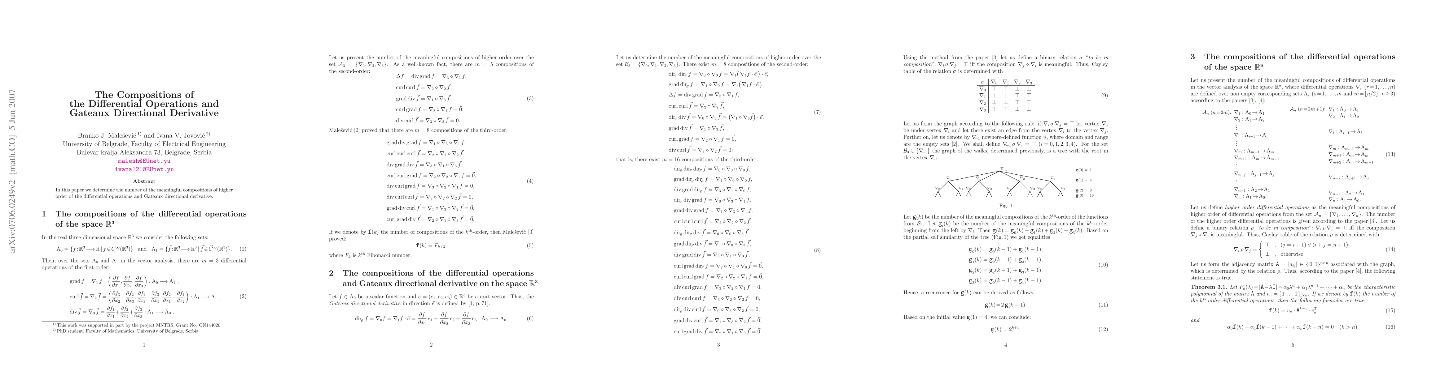 In this paper we determine the number of the meaningful compositions of higher order of the differential operations and Gateaux directional derivative.