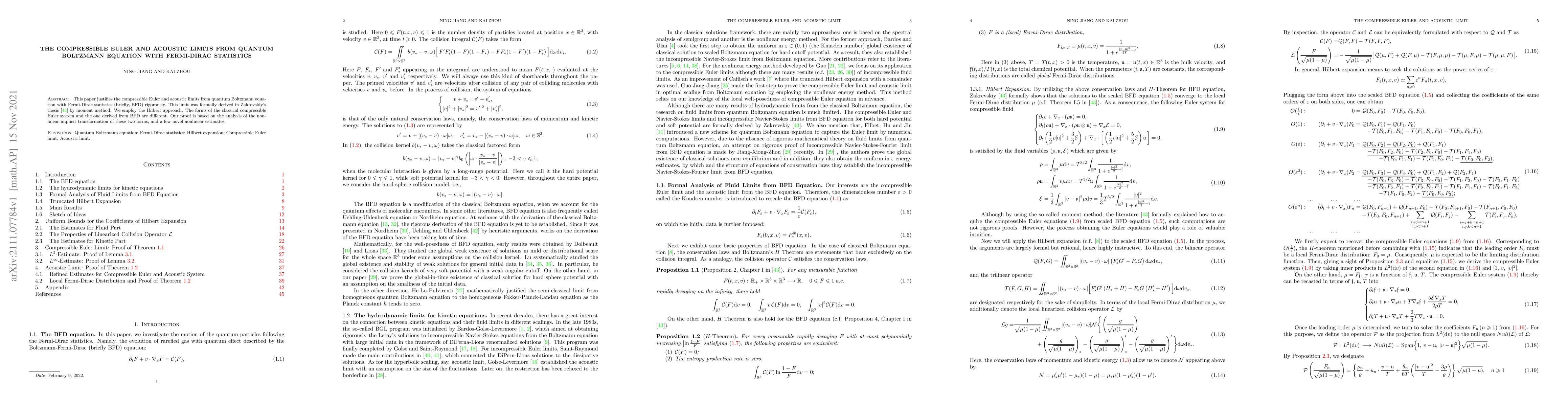 This paper rigorously justifies the compressible Euler and acoustic limits from the quantum Boltzmann equation with Fermi-Dirac statistics using the Hilbert approach. It contrasts the classical compressible Euler system with the derived form from BFD, employing novel nonlinear estimates to analyze their transformation.