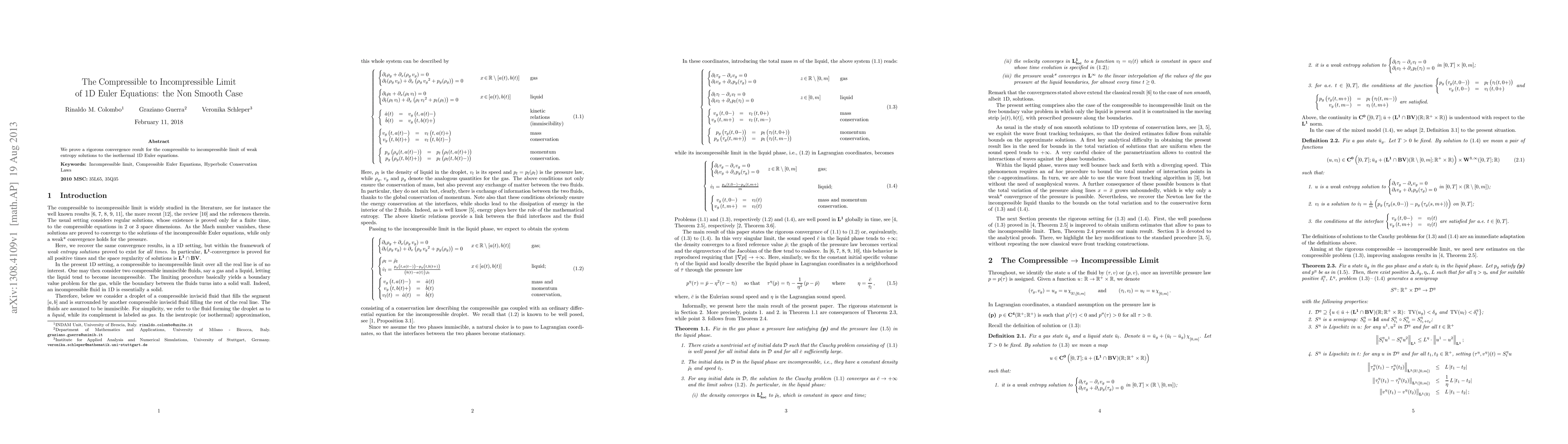 Researchers prove a rigorous convergence result for weak entropy solutions transitioning from compressible to incompressible 1D Euler equations, advancing our understanding of fluid dynamics.