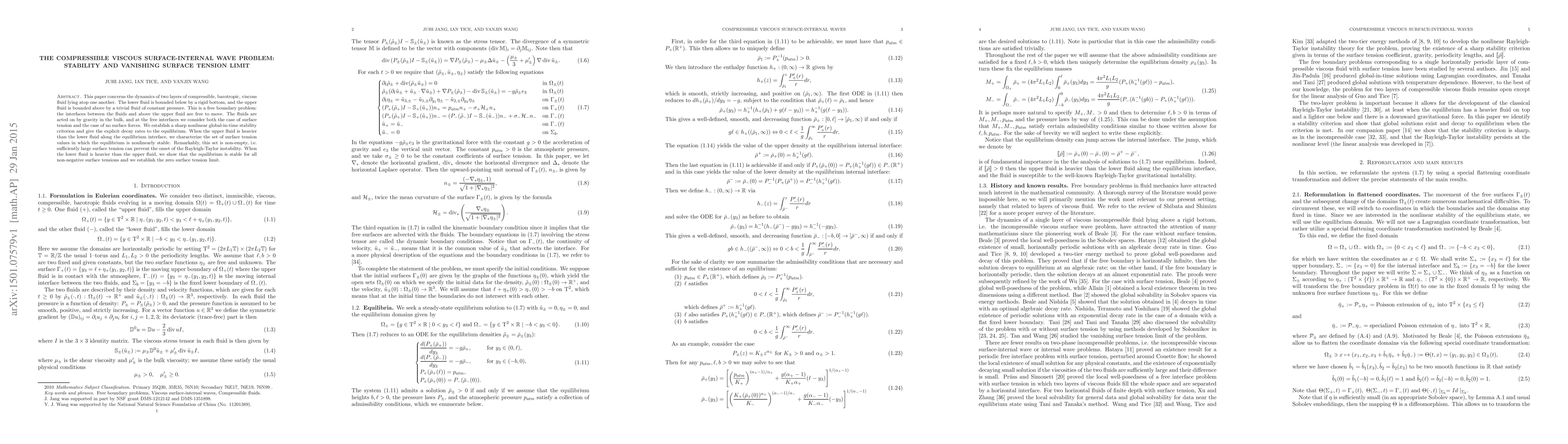 This paper investigates the stability of compressible viscous fluid layers under gravity, establishing a global stability criterion and decay rates. It finds that sufficiently large surface tension can prevent Rayleigh-Taylor instability when the upper fluid is heavier, while stability holds for all non-negative surface tensions when the lower fluid is heavier, and it characterizes the vanishing surface tension limit.