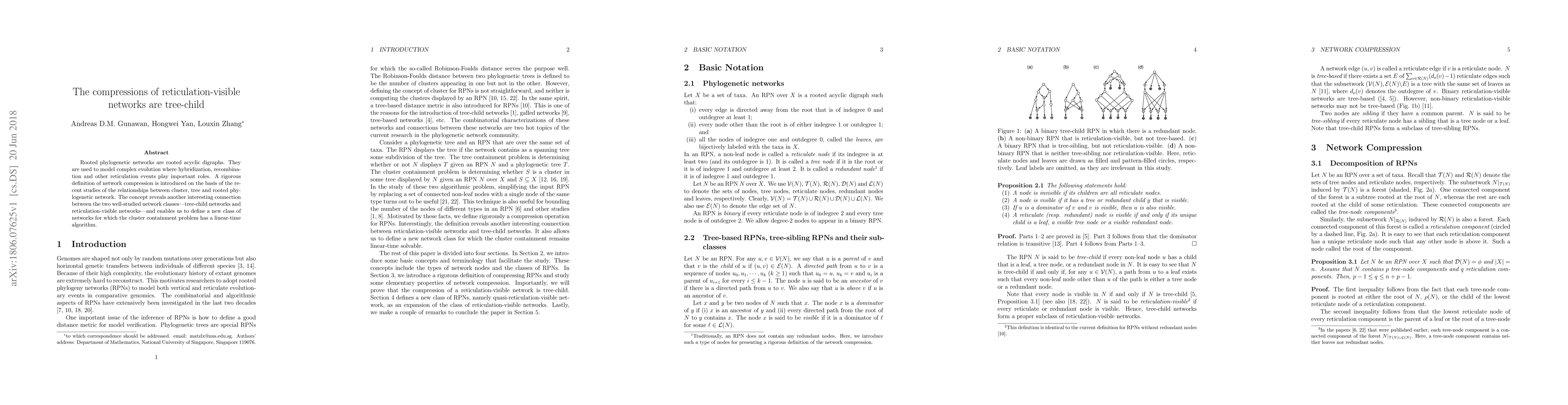 The paper formally introduces the concept of network compression for RPNs, revealing a connection between reticulation-visible and tree-child networks, and defining a new class of networks solvable for the cluster containment problem in linear time.