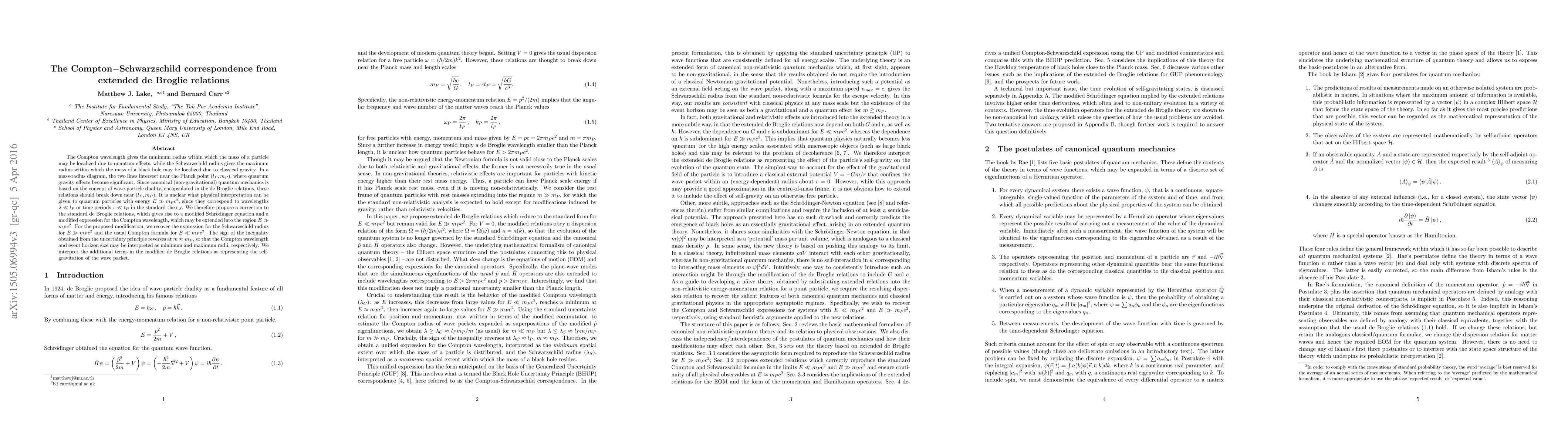 The Compton wavelength gives the minimum radius within which the mass of a particle may be localized due to quantum effects, while the Schwarzschild radius gives the maximum radius within which the mass of a black hole may be localized due to classial gravity. In a mass-radius diagram, the two lines intersect near the Planck point $(l_P,m_P)$, where quantum gravity effects become significant. Since canonical (non-gravitational) quantum mechanics is based on the concept of wave-particle duality, encapsulated in the de Broglie relations, these relations should break down near $(l_P,m_P)$. It is unclear what physical interpretation can be given to quantum particles with energy $E \gg m_Pc^2 $, since they correspond to wavelengths $\lambda \ll l_P$ or time periods $T \ll t_P$ in the standard theory. We therefore propose a correction to the standard de Broglie relations, which gives rise to a modified Schr{\" o}dinger equation and a modified expression for the Compton wavelength, which may be extended into the region $E \gg m_Pc^2$. For the proposed modification, we recover the expression for the Schwarzschild radius for $E \gg m_Pc^2$ and the usual Compton formula for $E \ll m_Pc^2$. The sign of the inequality obtained from the uncertainty principle reverses at $m \approx m_P$, so that the Compton wavelength and event horizon size may be interpreted as minimum and maximum radii, respectively. We interpret the additional terms in the modified de Broglie relations as representing the self-gravitation of the wave packet.