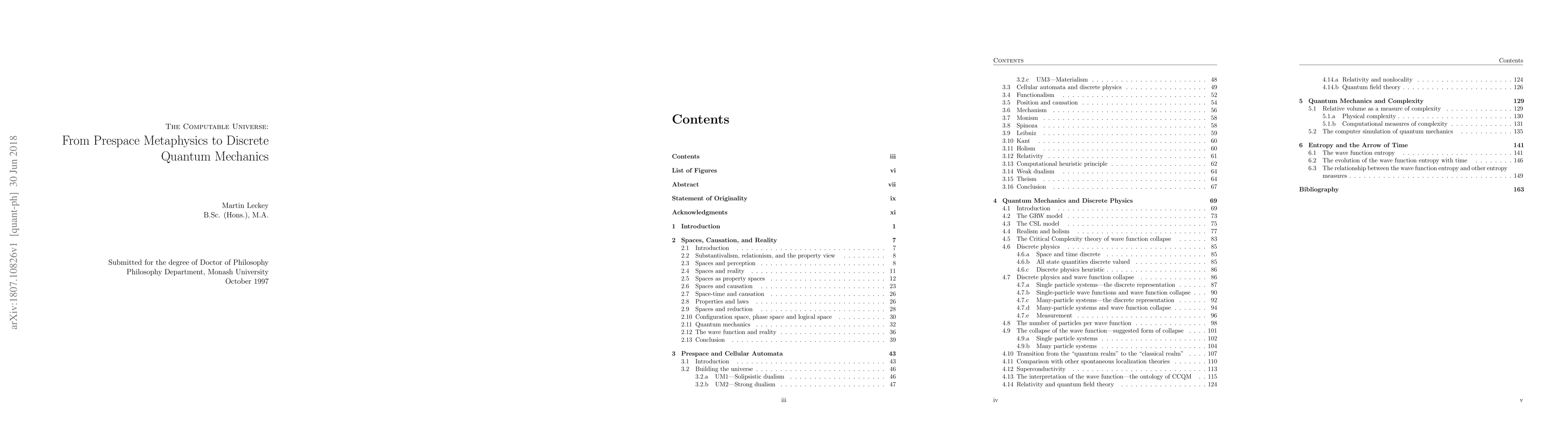 The central idea of this work is the concept of prespace, a hypothetical structure that is postulated to underlie the fabric of space or space-time. I consider how such a structure could relate to space and space-time, and the implications of the existence of this structure for quantum theory. I compare space and space-time to other spaces used in physics, such as configuration space, phase space, and Hilbert space. I support the 'property view' of space, opposing both the traditional views of space and space-time, substantivalism and relationism. I argue that configuration space has a special status in the microscopic world similar to the status of position space in the macroscopic world. The prespace structure is compared with a computational system, in particular to a cellular automaton, in which space and all physical quantities are broken into discrete units. One way open for a prespace metaphysics can be found if physics is made fully discrete. I suggest as a heuristic principle that the physical laws of our world are such that the computational cost of implementing those laws on an arbitrary computational system is minimized. I discuss the 'measurement problem' of quantum mechanics. Considering how quantum theory could be made fully discrete leads naturally to a suggestion of how standard linear quantum mechanics could be modified to give a solution to the measurement problem, calling this model Critical Complexity Quantum Mechanics (CCQM). I compare CCQM with some other proposed solutions to the measurement problem, in particular, the spontaneous localization model of Ghirardi, Rimini, and Weber. Finally, I argue that the measure of the complexity of quantum mechanical states introduced in CCQM also provides a new definition of entropy for quantum mechanics, and suggests an objective foundation for statistical mechanics, thermodynamics, and the arrow of time.