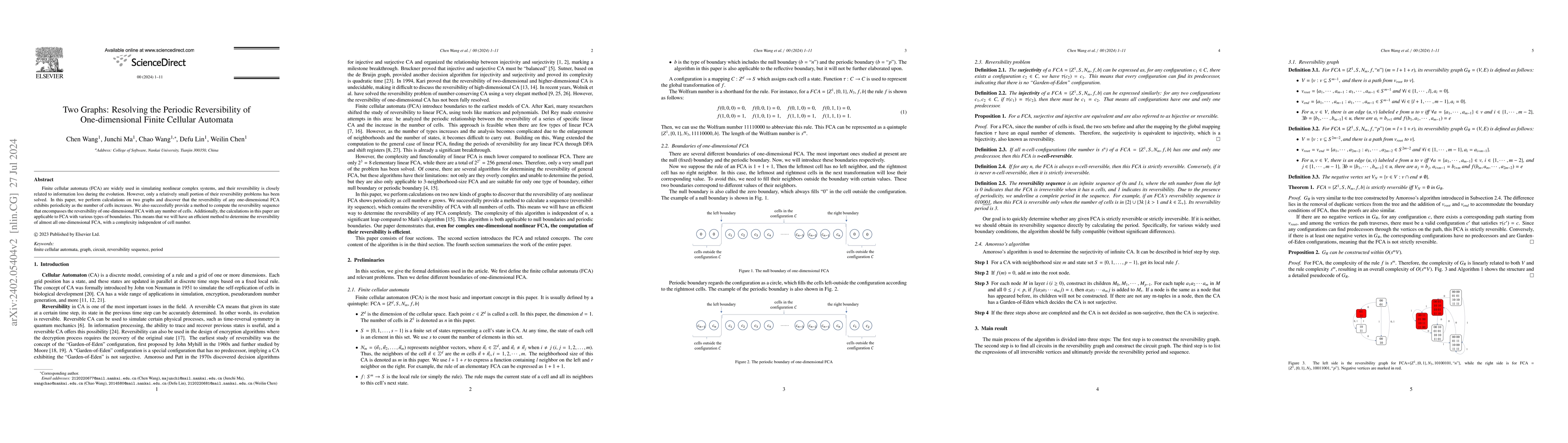 This paper presents an efficient algorithm for determining the reversibility of any one-dimensional finite cellular automata (FCA) regardless of the number of cells, with a complexity independent of n. The authors discover periodicity in FCA reversibility and provide a method to compute the reversibility sequence for FCAs with various boundary types.