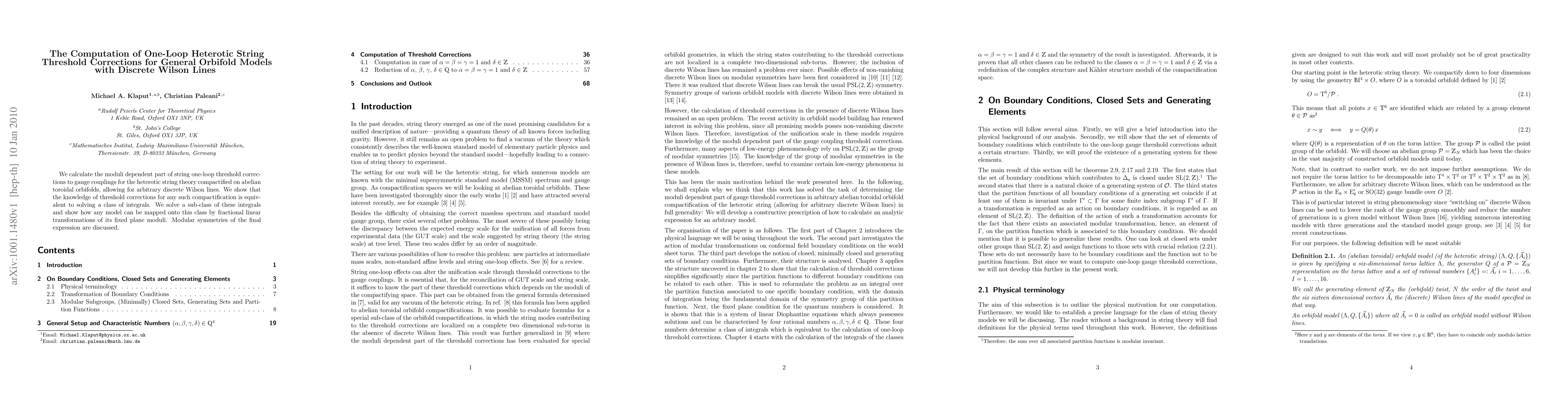This paper computes one-loop threshold corrections for heterotic string theory in toroidal orbifold models with discrete Wilson lines, demonstrating that solving these corrections is equivalent to evaluating a specific class of integrals. The authors solve a subset of these integrals and show how any model can be transformed into this class using fractional linear transformations of its moduli.