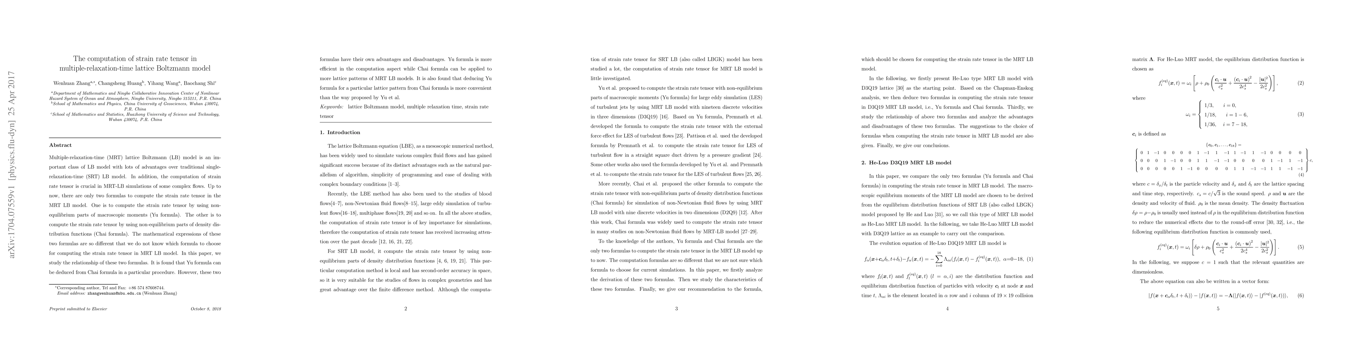 Multiple-relaxation-time (MRT) lattice Boltzmann (LB) model is an important class of LB model with lots of advantages over traditional single-relaxation-time (SRT) LB model. In addition, the computation of strain rate tensor is crucial in MRT-LB simulations of some complex flows. Up to now, there are only two formulas to compute the strain rate tensor in the MRT LB model. One is to compute the strain rate tensor by using non-equilibrium parts of macroscopic moments (Yu formula). The other is to compute the strain rate tensor by using non-equilibrium parts of density distribution functions (Chai formula). The mathematical expressions of these two formulas are so different that we do not know which formula to choose for computing the strain rate tensor in MRT LB model. In this paper, we study the relationship of these two formulas. It is found that Yu formula can be deduced from Chai formula in a particular procedure. However, these two formulas have their own advantages and disadvantages. Yu formula is more efficient in the computation aspect while Chai formula can be applied to more lattice patterns of MRT LB models. It is also found that deducing Yu formula for a particular lattice pattern from Chai formula is more convenient than the way proposed by Yu et al.