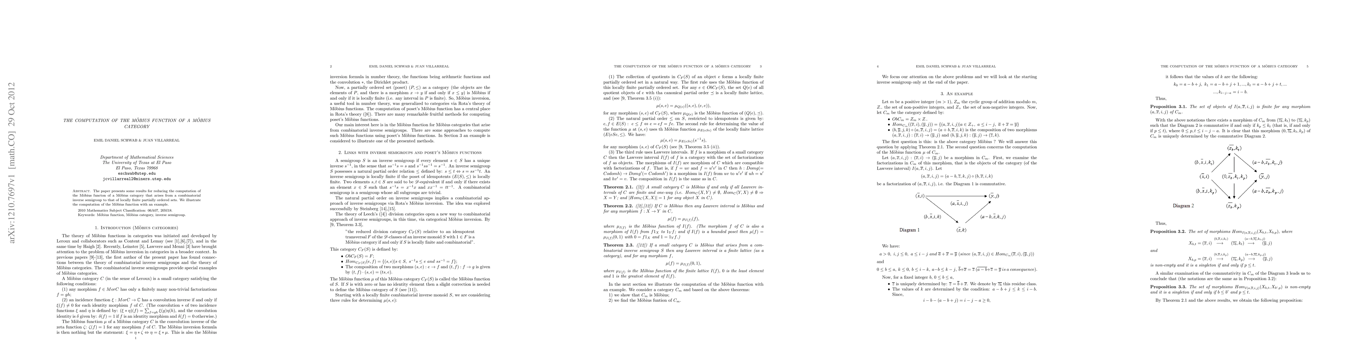 The paper outlines methods to simplify the computation of the Möbius function in Möbius categories from combinatorial inverse semigroups by relating them to locally finite partially ordered sets. An illustrative example is provided to demonstrate the process.