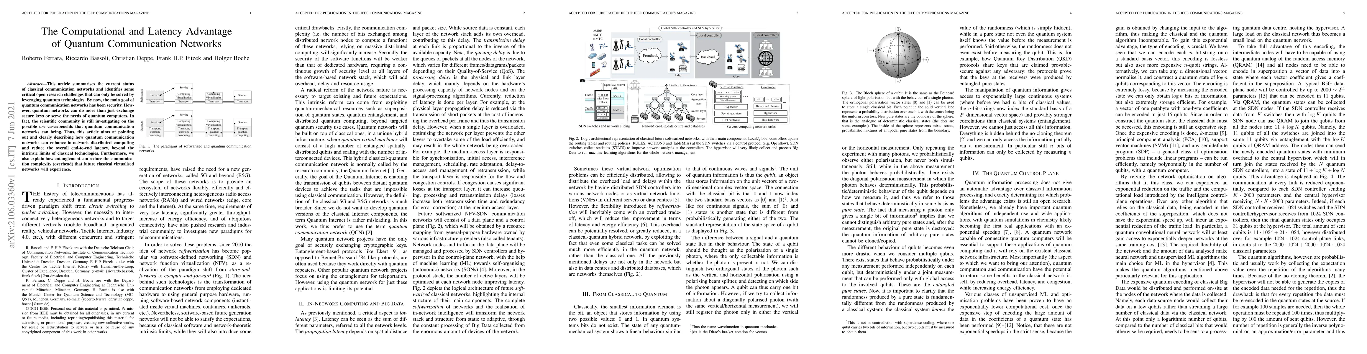 Quantum communication networks can enhance in-network distributed computing and reduce end-to-end latency beyond classical technologies, leveraging entanglement to simplify complexity.