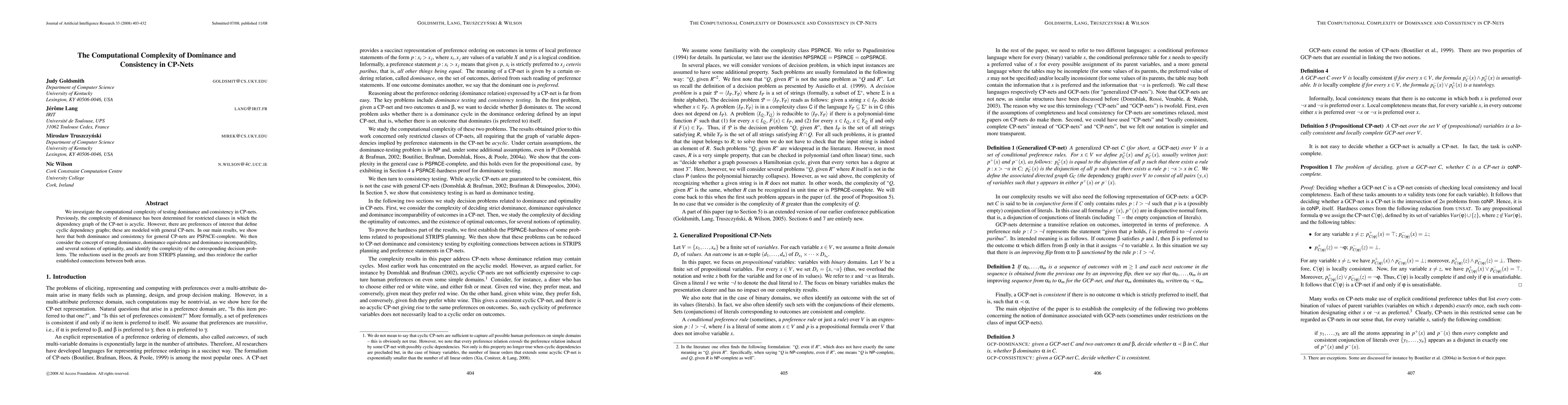 We investigate the computational complexity of testing dominance and consistency in CP-nets. Previously, the complexity of dominance has been determined for restricted classes in which the dependency graph of the CP-net is acyclic. However, there are preferences of interest that define cyclic dependency graphs; these are modeled with general CP-nets. In our main results, we show here that both dominance and consistency for general CP-nets are PSPACE-complete. We then consider the concept of strong dominance, dominance equivalence and dominance incomparability, and several notions of optimality, and identify the complexity of the corresponding decision problems. The reductions used in the proofs are from STRIPS planning, and thus reinforce the earlier established connections between both areas.