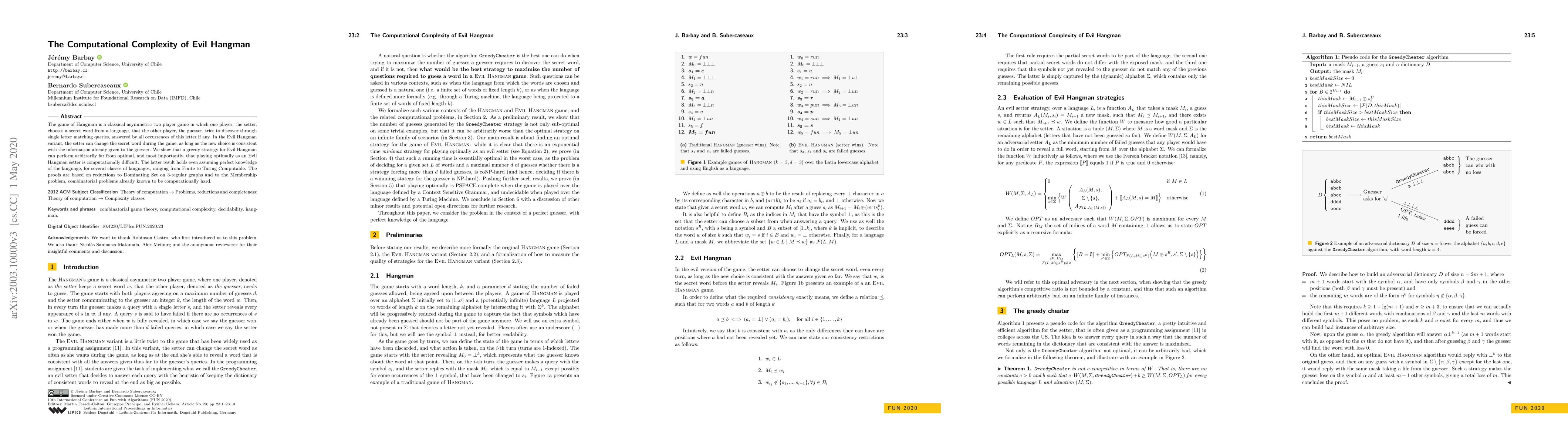 The game of Hangman is a classical asymmetric two player game in which one player, the setter, chooses a secret word from a language, that the other player, the guesser, tries to discover through single letter matching queries, answered by all occurrences of this letter if any. In the Evil Hangman variant, the setter can change the secret word during the game, as long as the new choice is consistent with the information already given to the guesser. We show that a greedy strategy for Evil Hangman can perform arbitrarily far from optimal, and most importantly, that playing optimally as an Evil Hangman setter is computationally difficult. The latter result holds even assuming perfect knowledge of the language, for several classes of languages, ranging from Finite to Turing Computable. The proofs are based on reductions to Dominating Set on 3-regular graphs and to the Membership problem, combinatorial problems already known to be computationally hard.