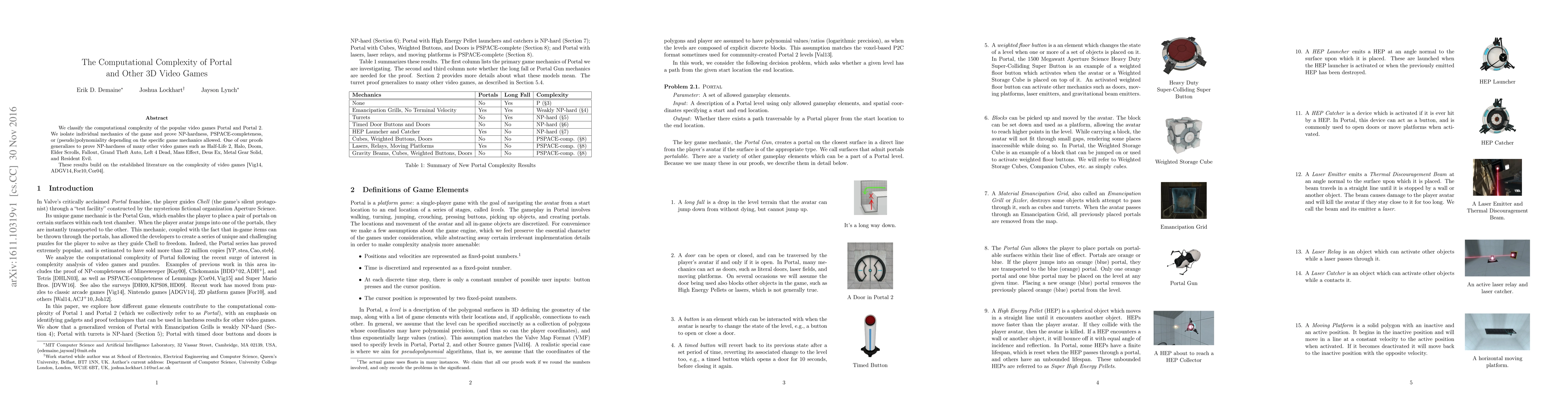 This paper classifies the computational complexity of the video games Portal and Portal 2, proving NP-hardness, PSPACE-completeness, or pseudopolynomiality for various mechanics. The findings generalize to demonstrate the NP-hardness of several other popular games, contributing to the literature on video game complexity.